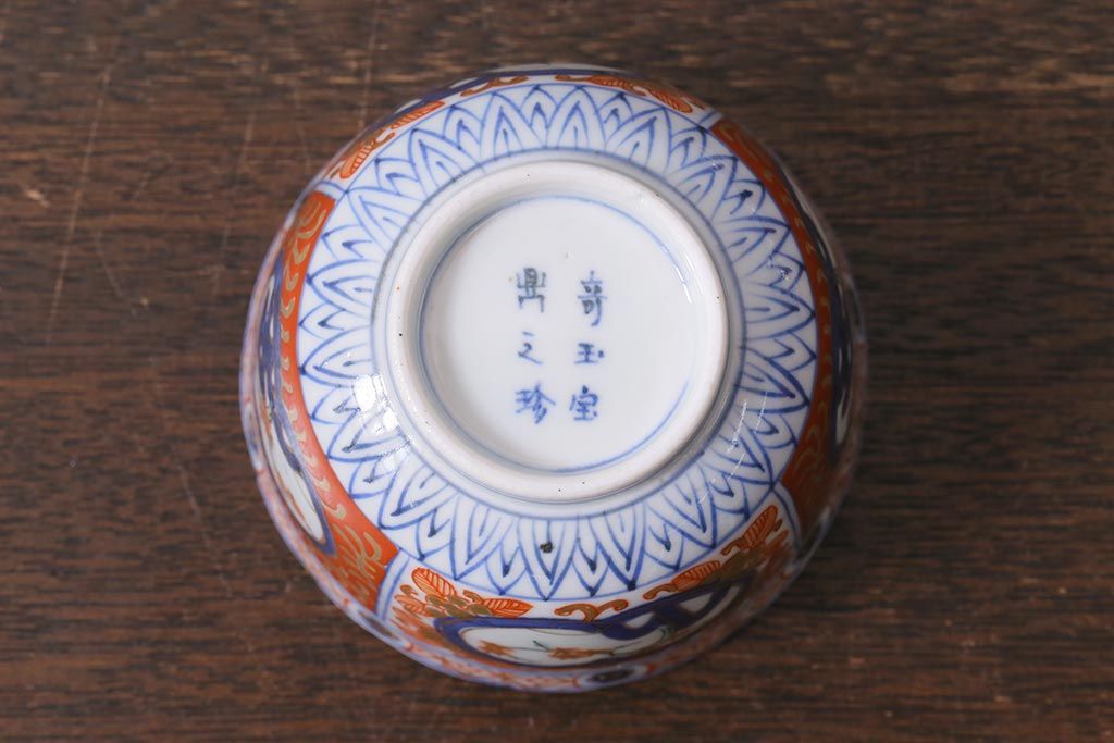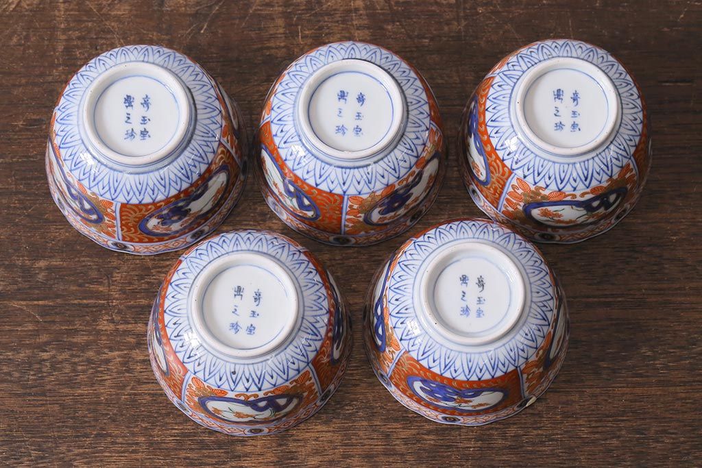 ラフジュ工房> 伝統工芸品> 伊万里焼 > アンティーク雑貨 幕末明治期 伊万里 色絵 奇玉宝鼎之珍 蕎麦猪口5客セット(湯呑、向付、和食器)(R-040850)