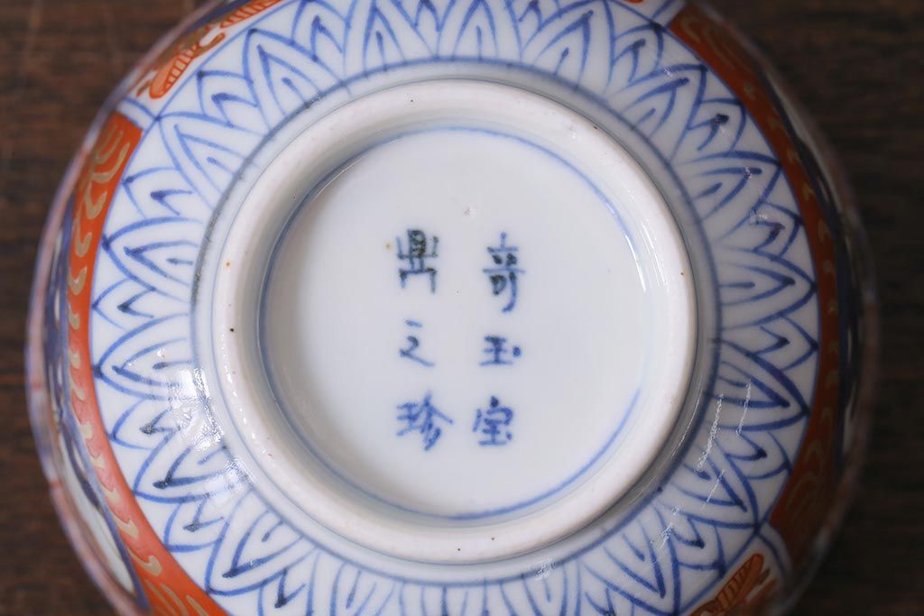 ラフジュ工房> 和食器・茶道具> 蕎麦猪口 > アンティーク雑貨 幕末明治期 伊万里 色絵 奇玉宝鼎之珍 蕎麦猪口5客セット(湯呑、向付、和食器)(R-040850)