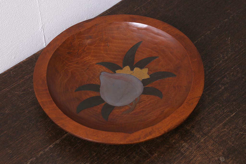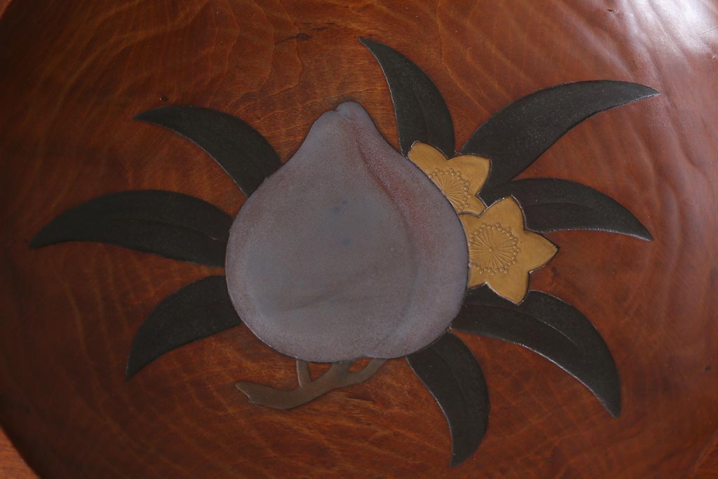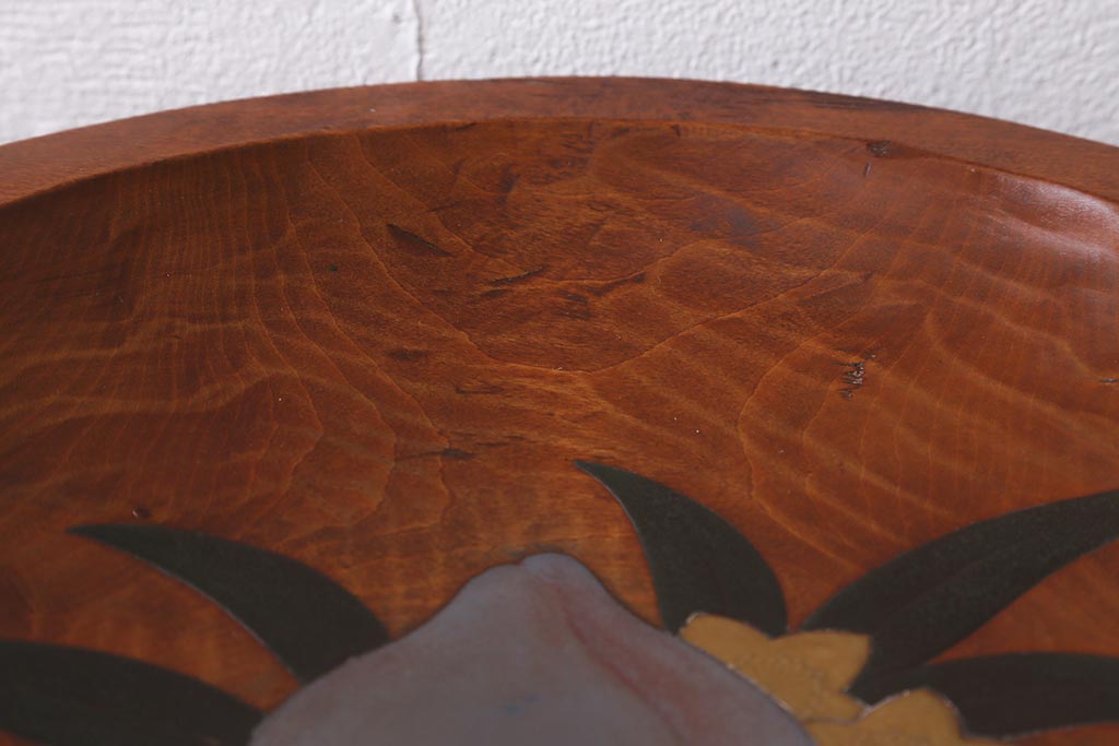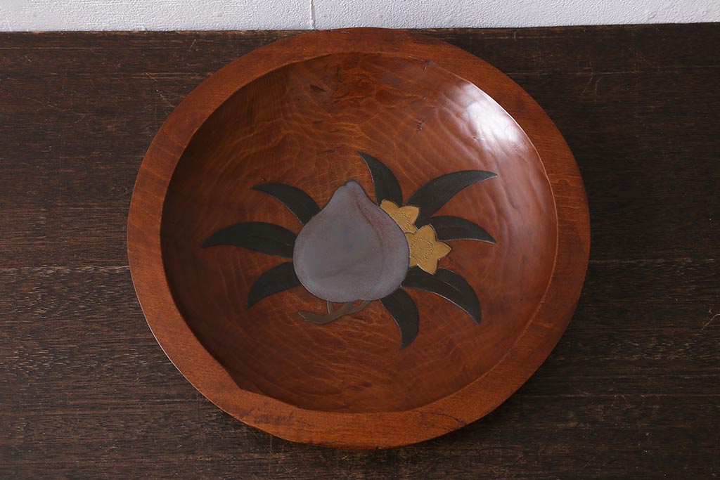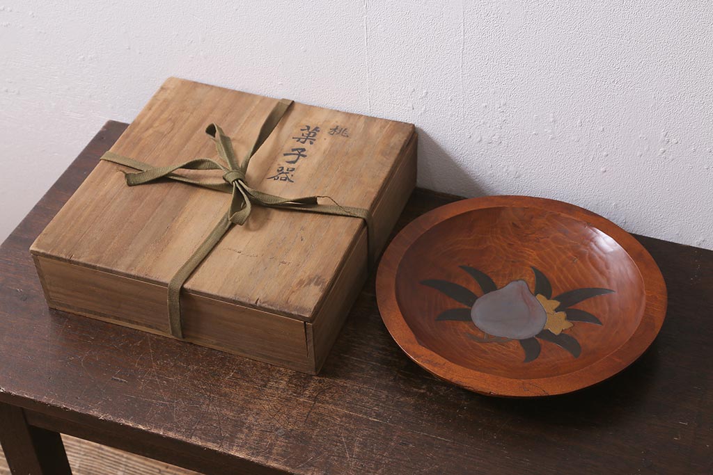 ラフジュ工房> 骨董・美術品> 骨董-漆器 > 中古 共箱付き 河面冬山 蒔絵 桃 菓子器(木製漆器)(R-041108)