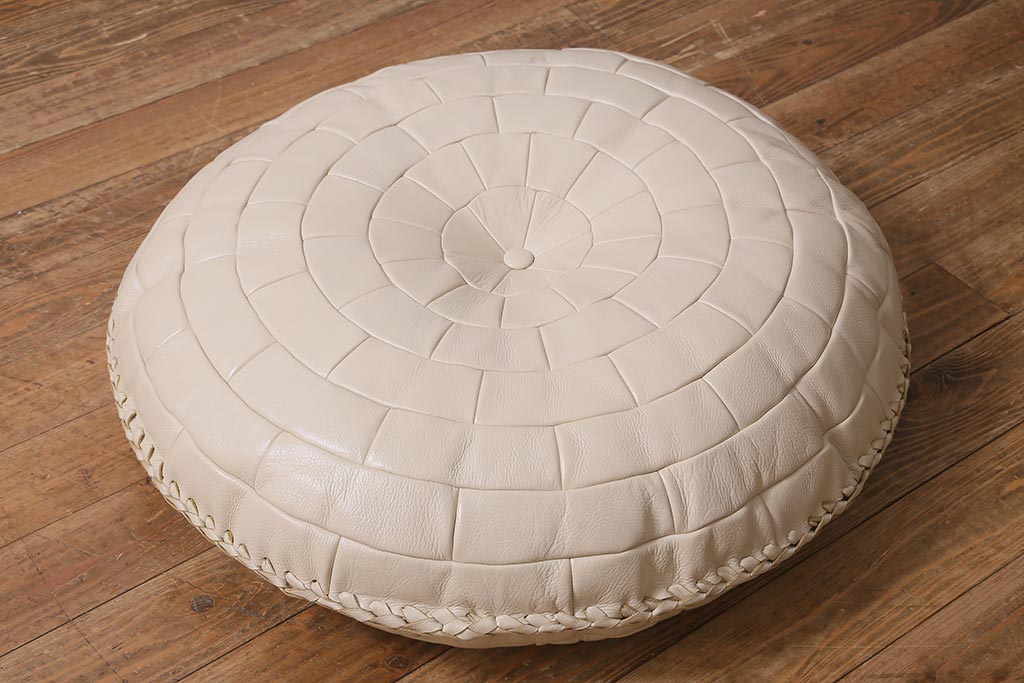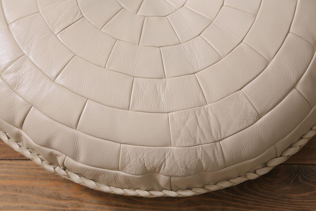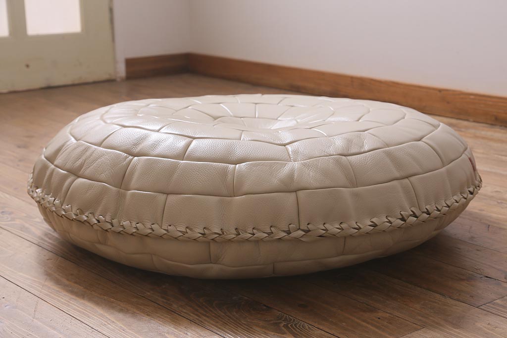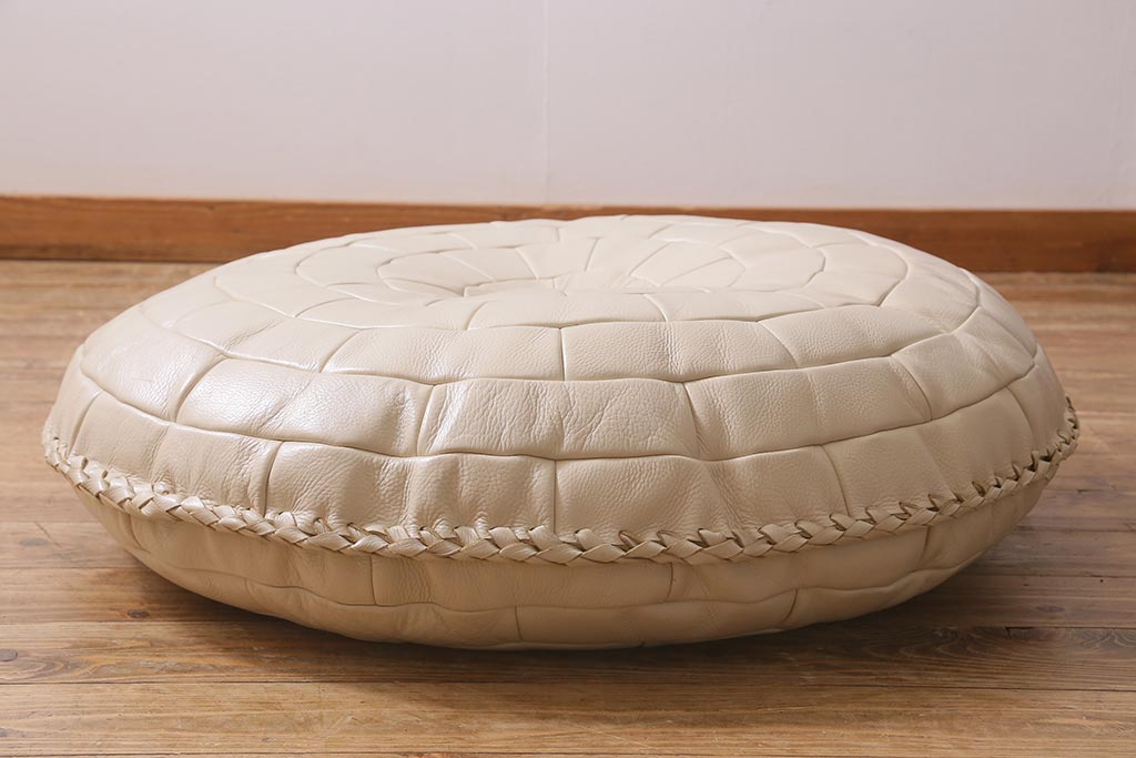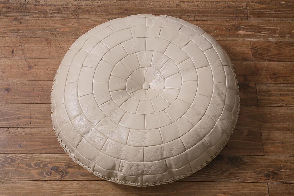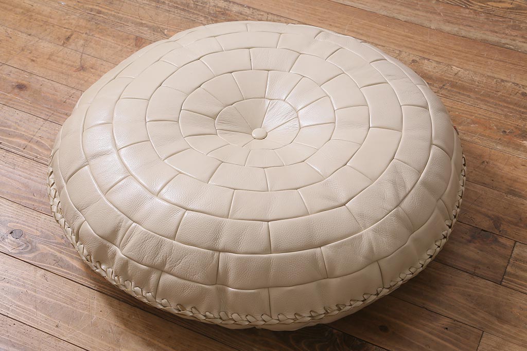 中古 CONDE HOUSE(カンディハウス) 直径80 アイボリーカラーが優しげな革クッション(フロアクッション)(R-041056)