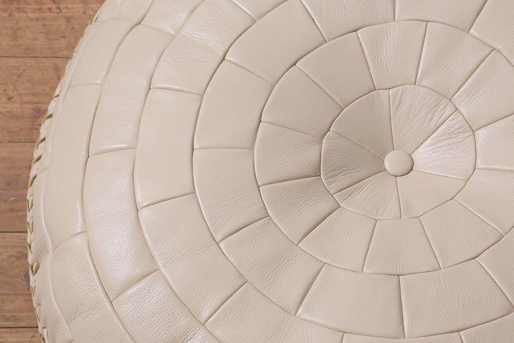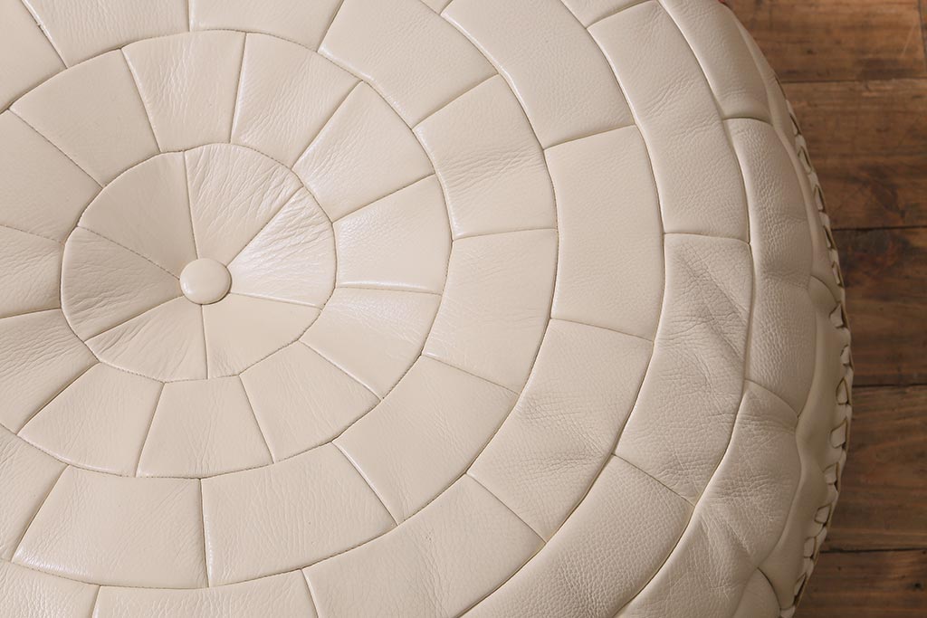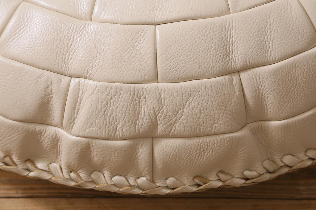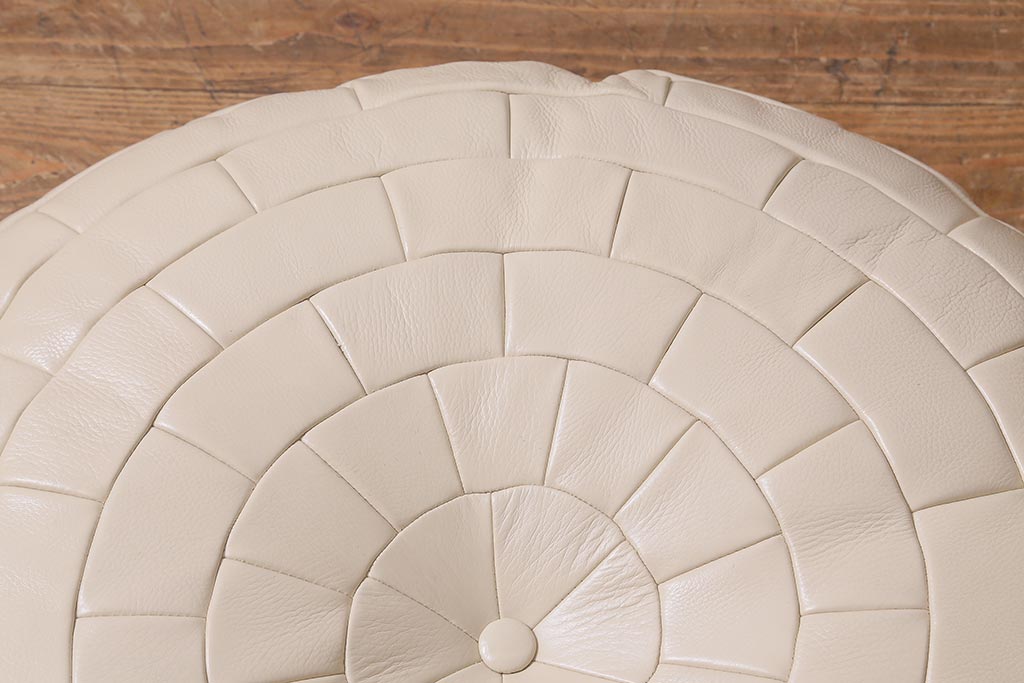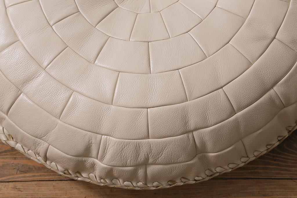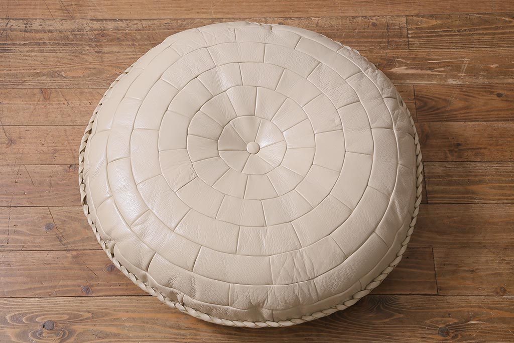 中古 CONDE HOUSE(カンディハウス) 直径80 アイボリーカラーが優しげな革クッション(フロアクッション)(R-041056)