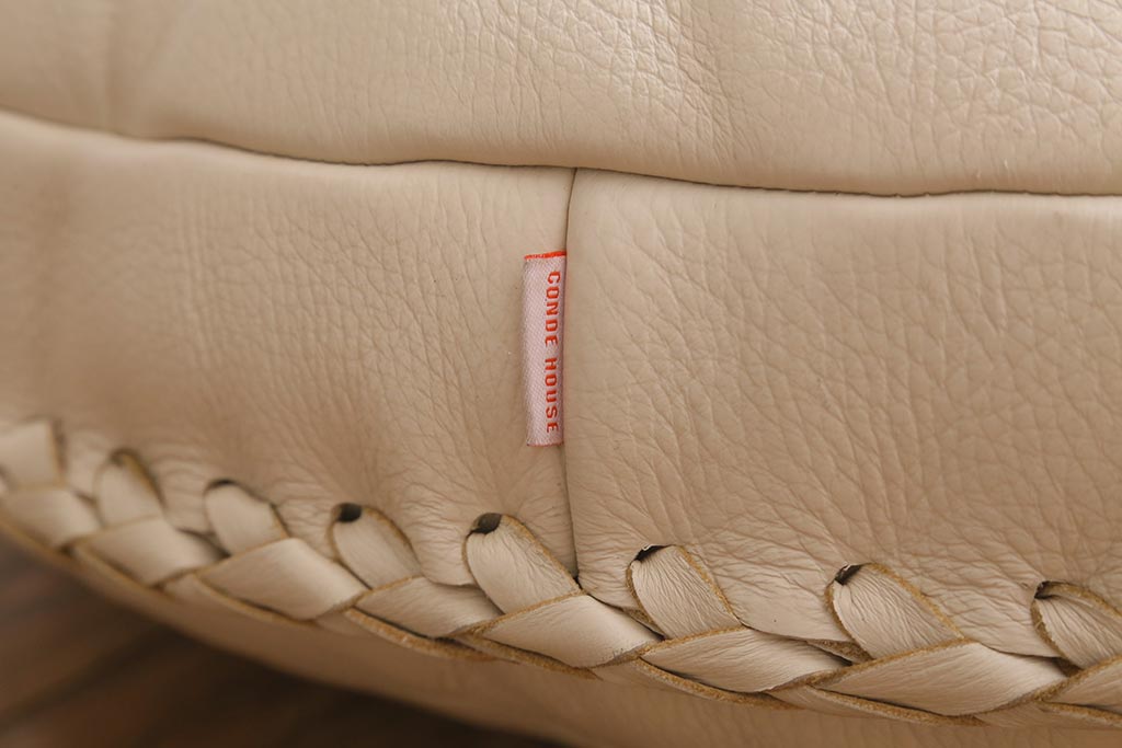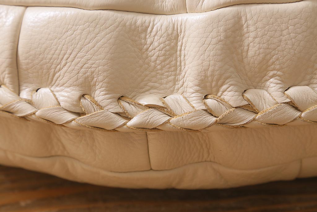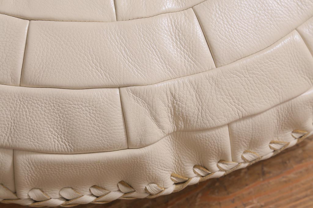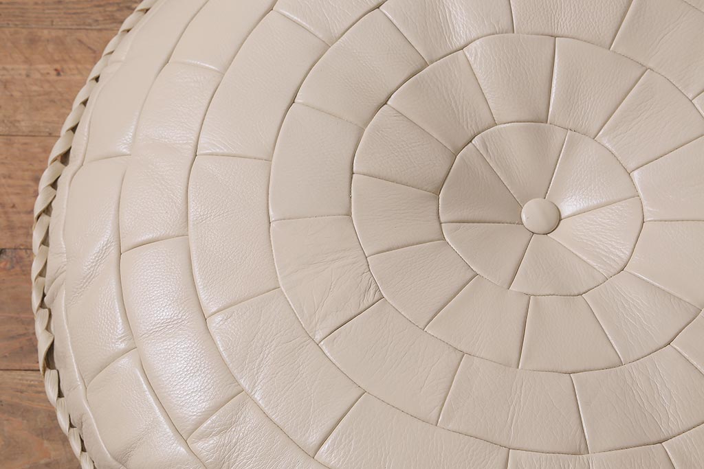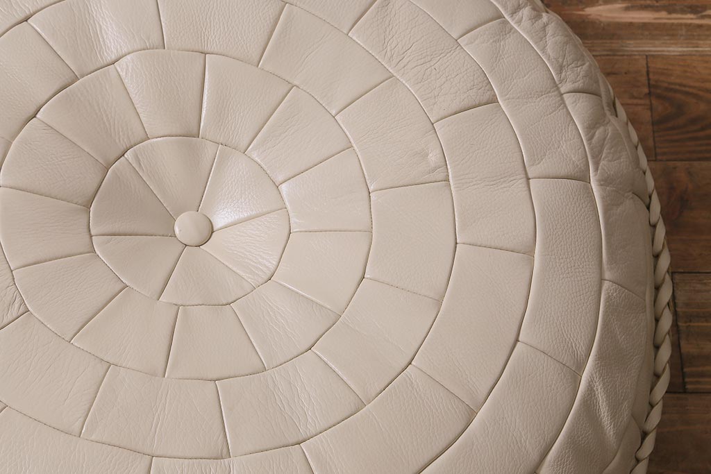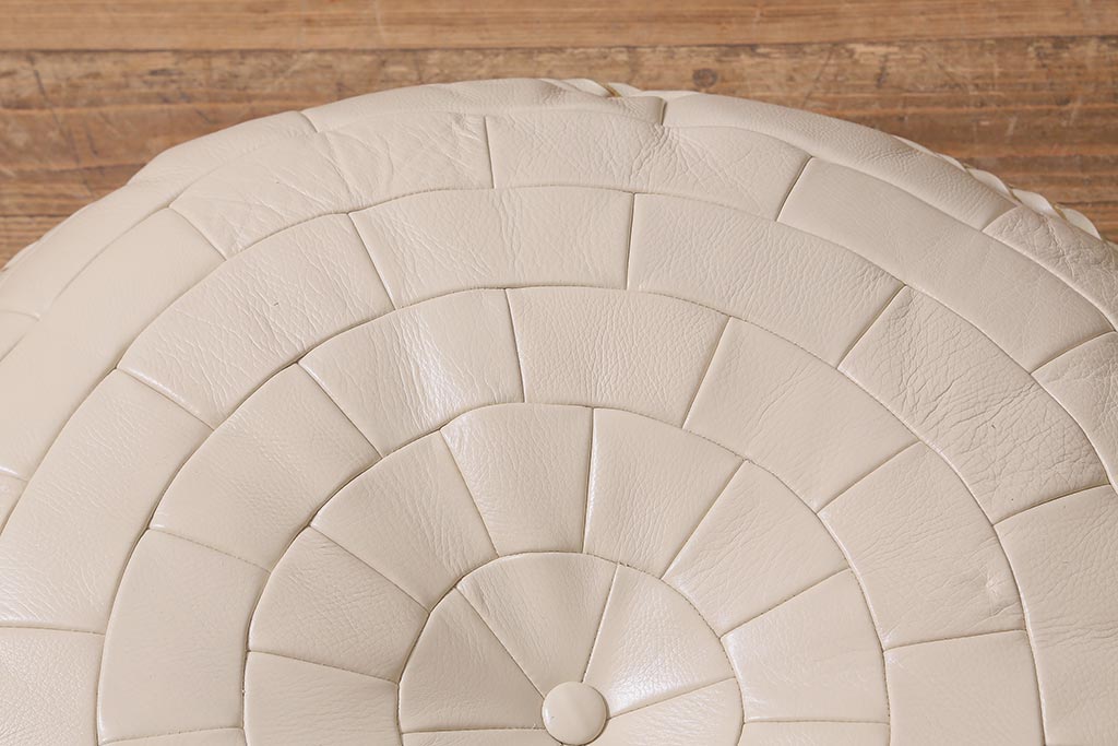 中古 CONDE HOUSE(カンディハウス) 直径80 アイボリーカラーが優しげな革クッション(フロアクッション)(R-041056)