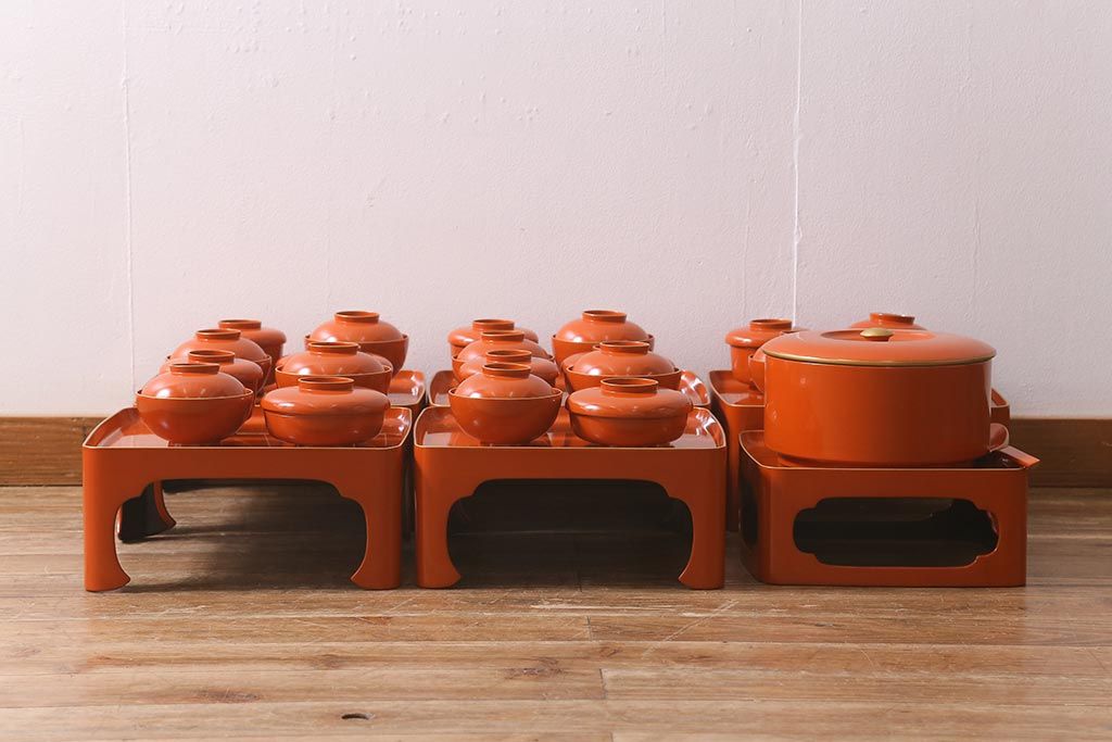 アンティーク雑貨 大正昭和初期 箱付き 輪島塗 極上本堅地お膳・お椀セット(木製漆器)(R-041234)