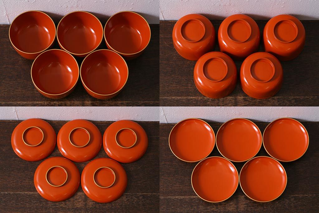 ラフジュ工房> 和食器・茶道具> お椀・茶碗 > アンティーク雑貨 大正昭和初期 箱付き 輪島塗 極上本堅地お膳・お椀セット(木製漆器)(R-041234)