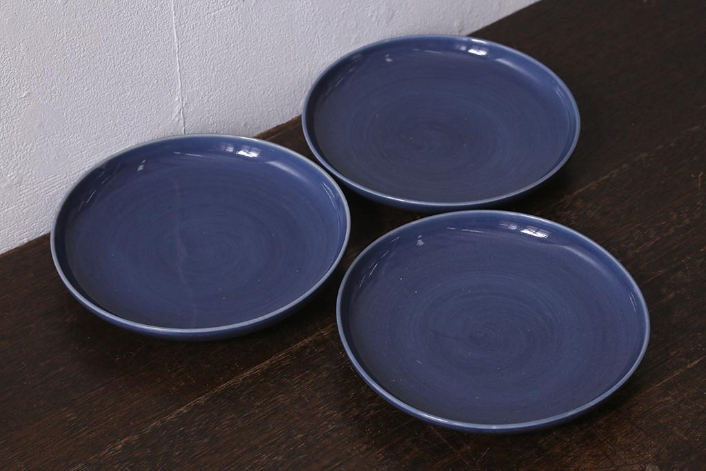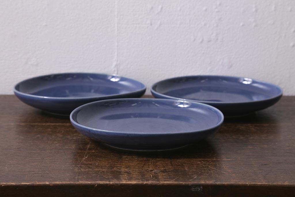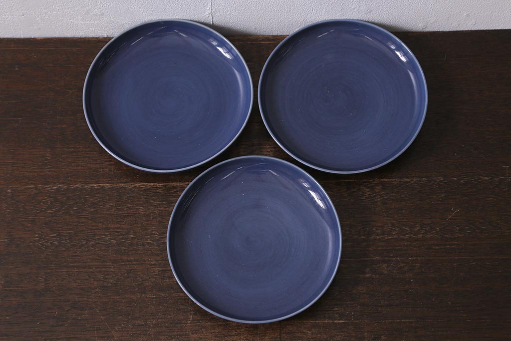 アンティーク雑貨 古民具・骨董 江戸期 古伊万里 瑠璃釉六寸皿3枚セット(和食器、中皿)(R-041111)