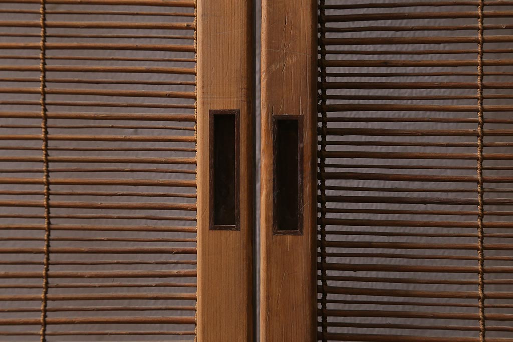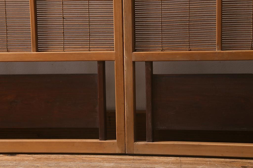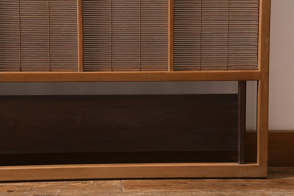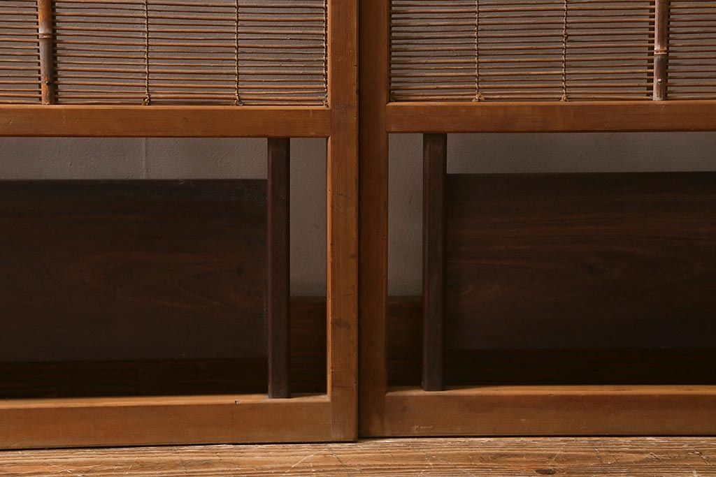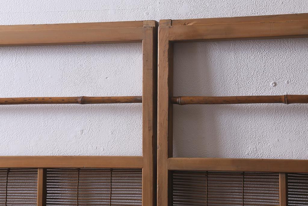 アンティーク建具 昭和中期 腰板桑材 渋みのある色味が素敵な御簾戸2枚セット(簾戸、簀戸、葭戸、夏障子、夏戸、葦戸)(R-041316)