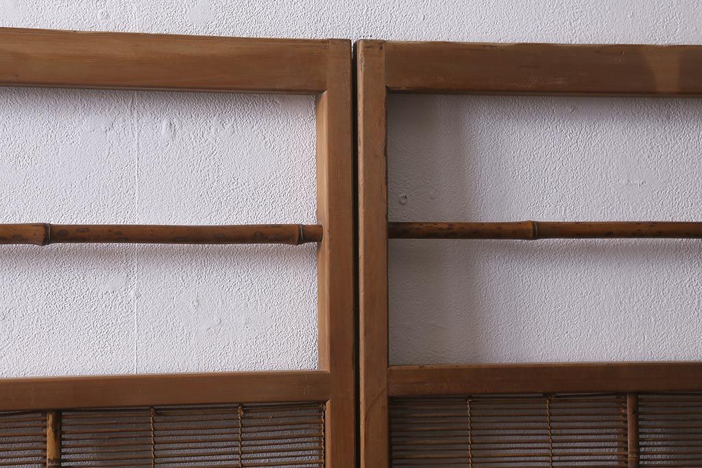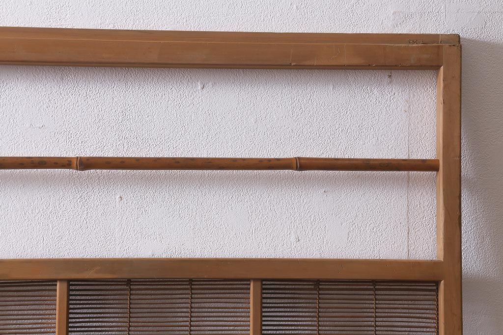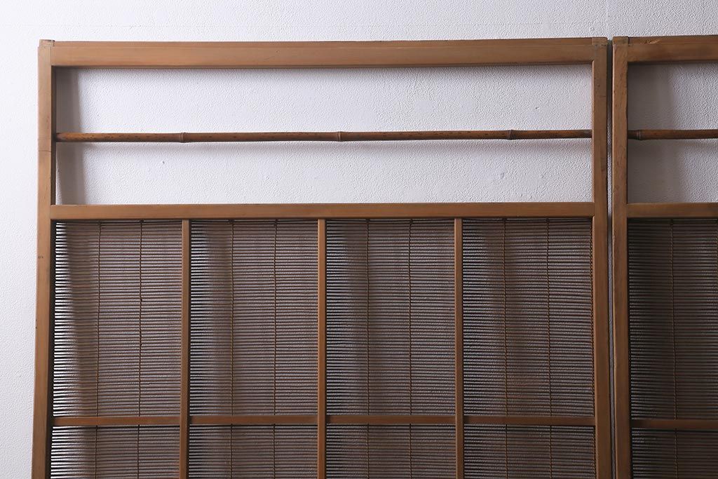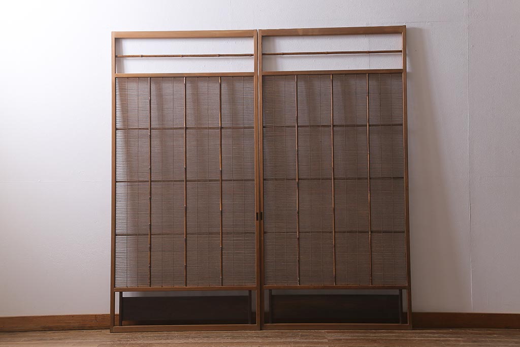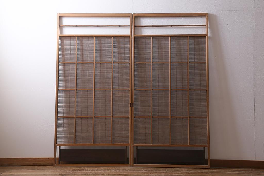 アンティーク建具 昭和中期 腰板桑材 渋みのある色味が素敵な御簾戸2枚セット(簾戸、簀戸、葭戸、夏障子、夏戸、葦戸)(R-041316)