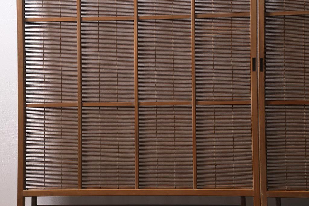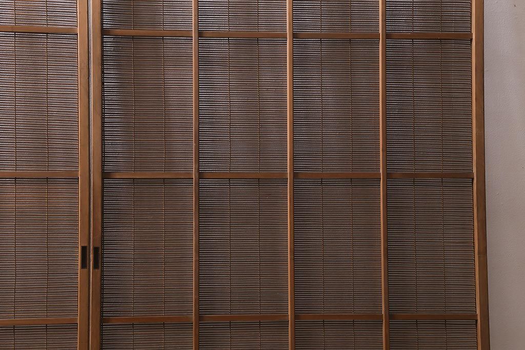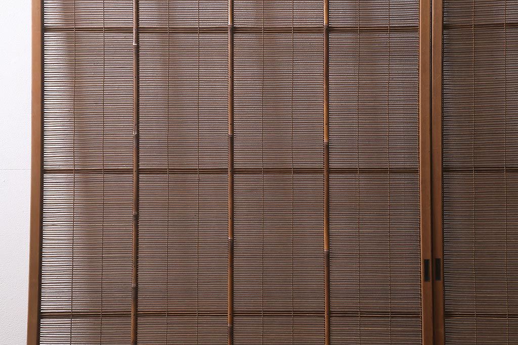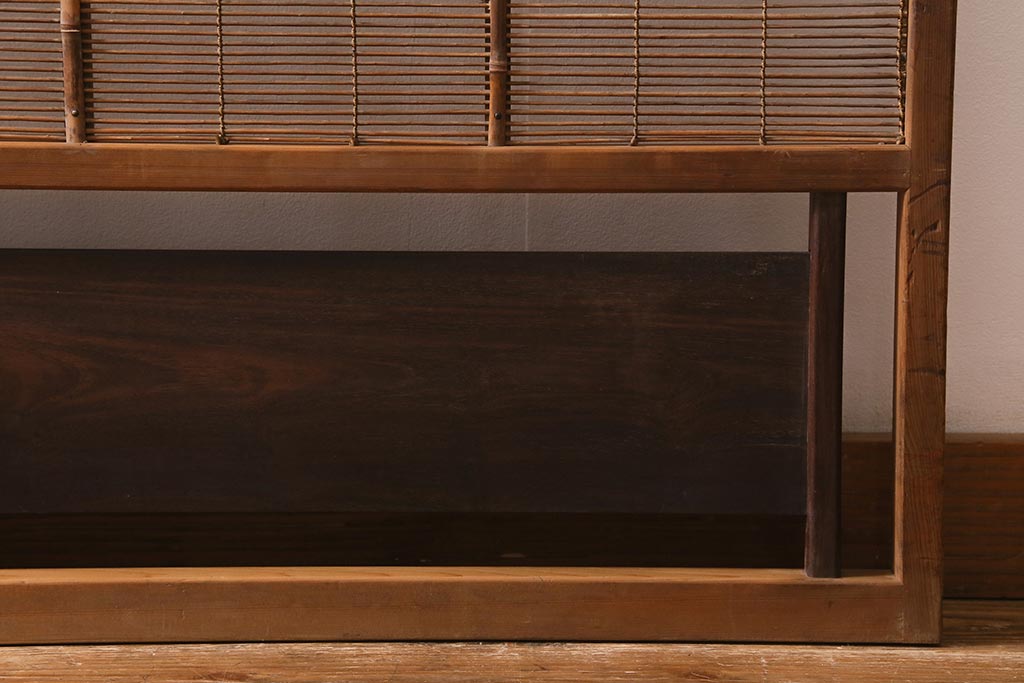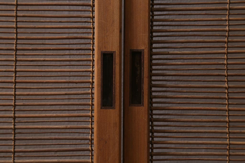 ドア・建具> 引き戸 > アンティーク建具 昭和中期 腰板桑材 渋みのある色味が素敵な御簾戸2枚セット(簾戸、簀戸、葭戸、夏障子、夏戸、葦戸)(R-041316)