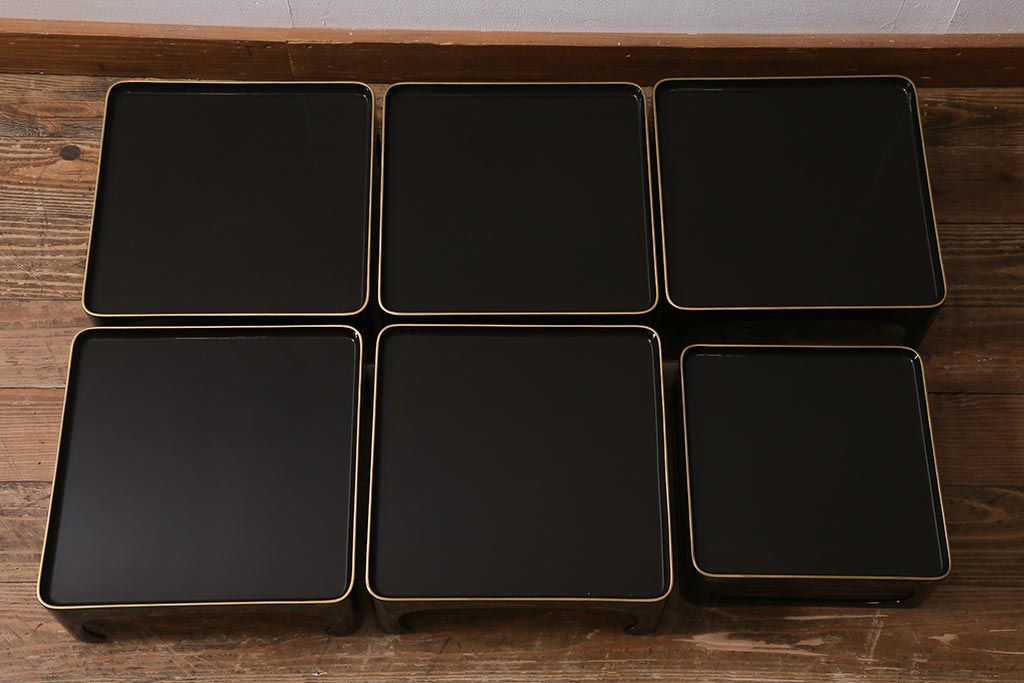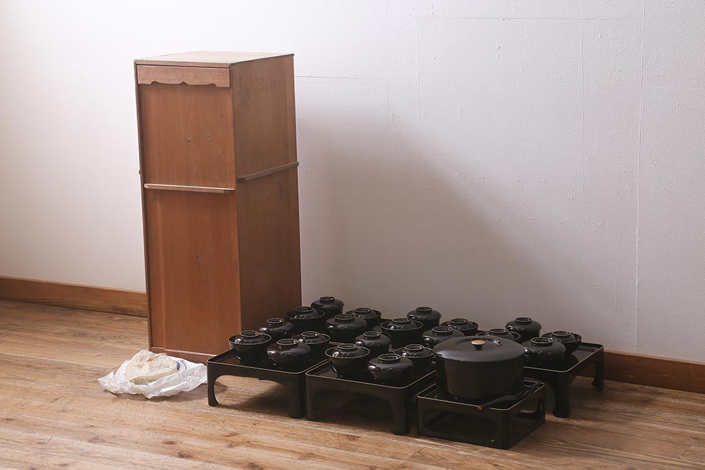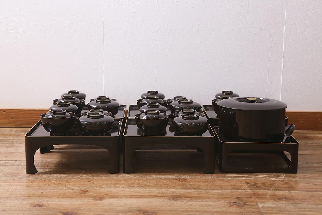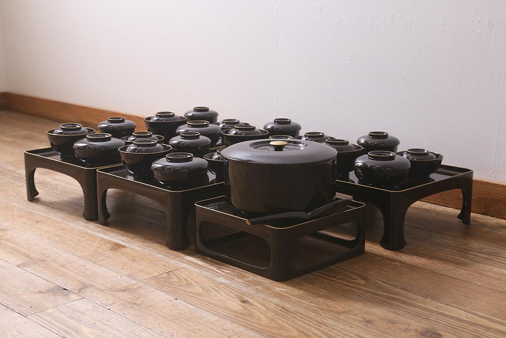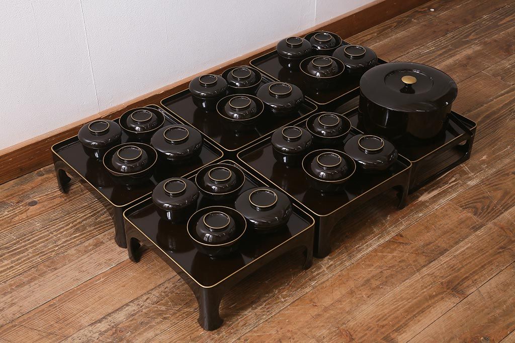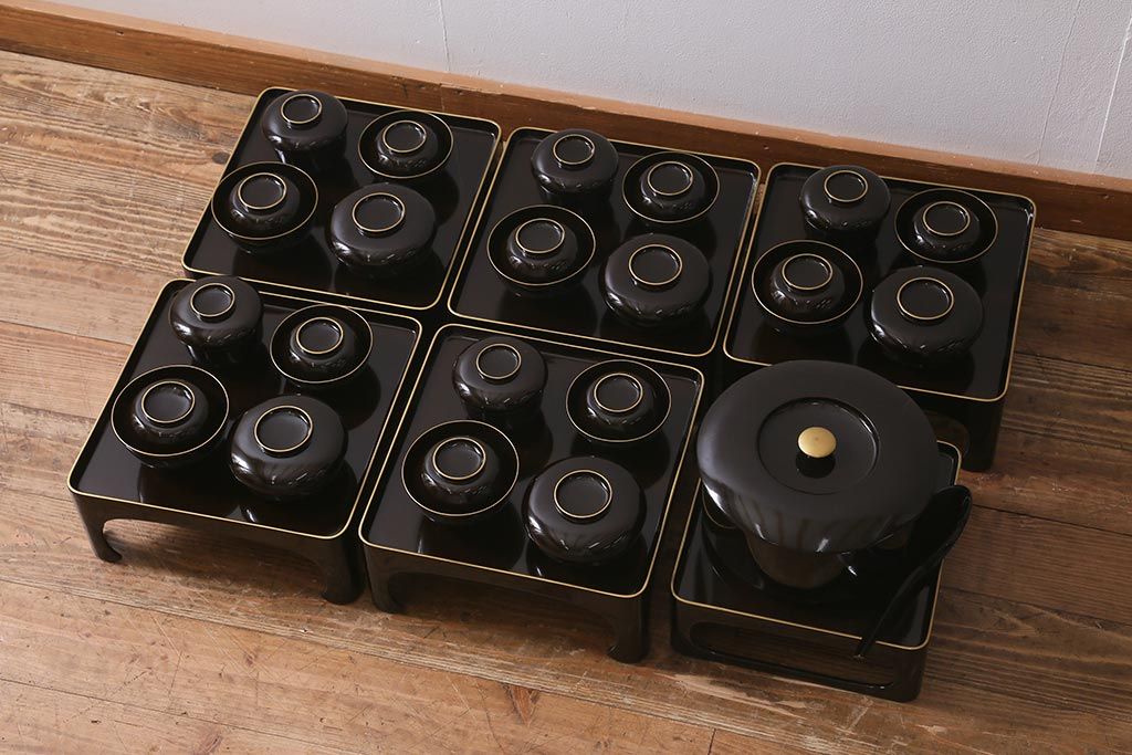 アンティーク雑貨 大正昭和初期 箱付き 輪島塗 極上本堅地お膳・お椀セット(木製漆器、和食器)(R-041106)
