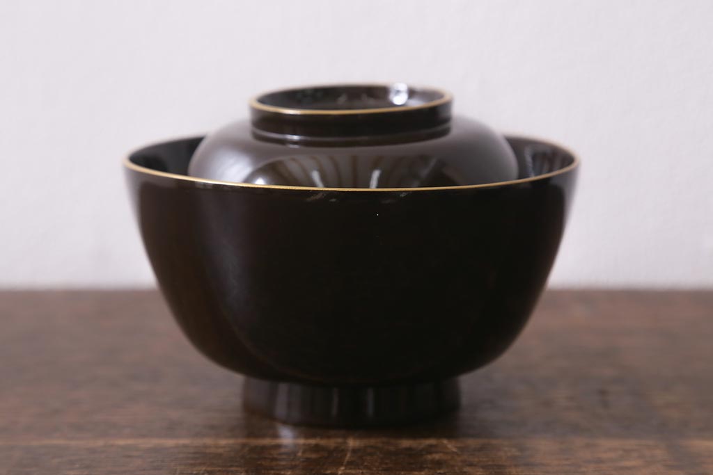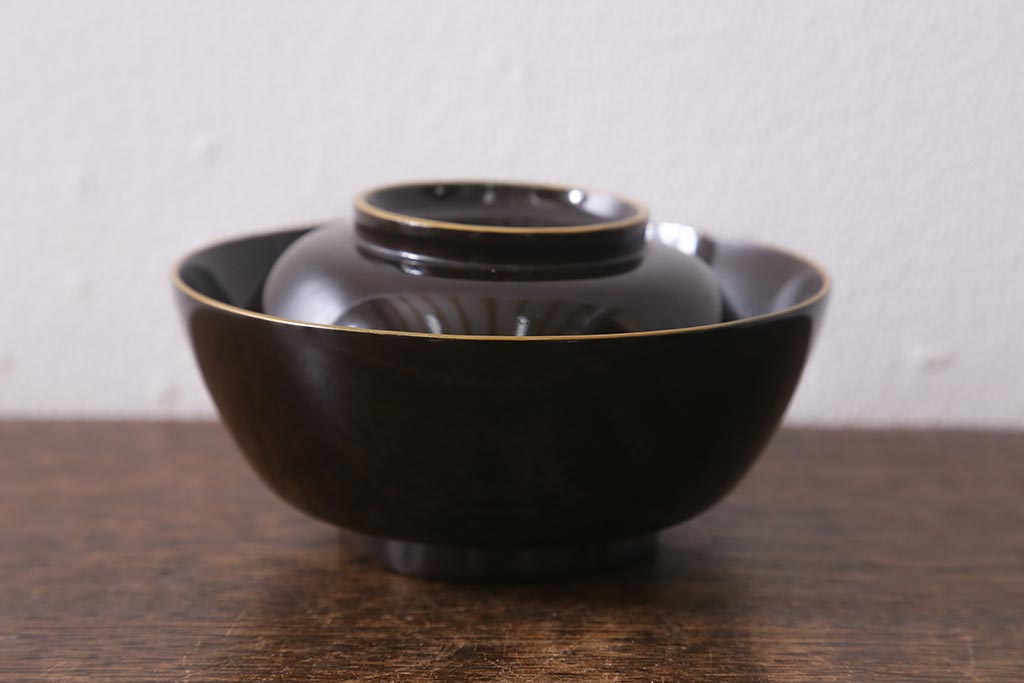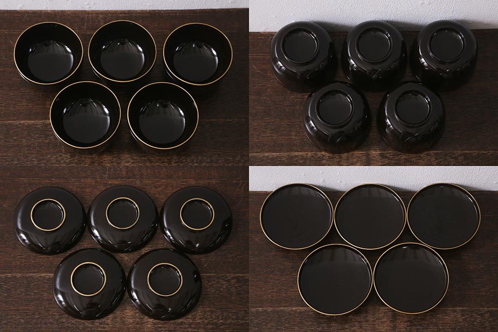 ラフジュ工房> 和食器・茶道具> お椀・茶碗 > アンティーク雑貨 大正昭和初期 箱付き 輪島塗 極上本堅地お膳・お椀セット(木製漆器、和食器)(R-041106)