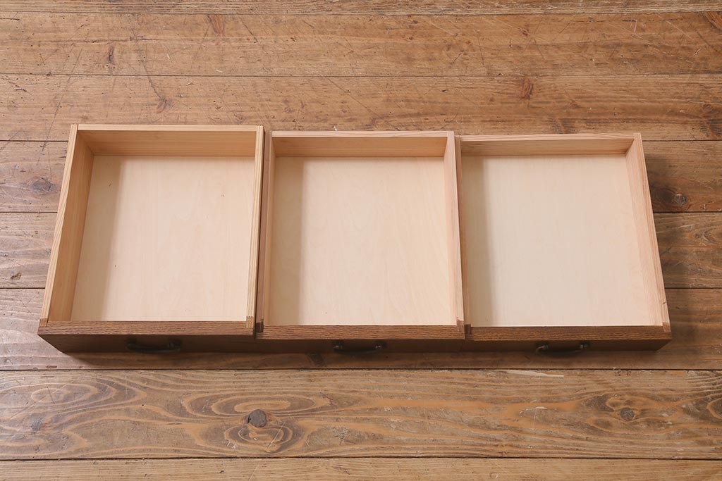ラフジュ工房オリジナル 古金具リメイク 前板栗材 ヒノキ材 小物の整理に便利な小引き出し(小物収納)(R-041357)