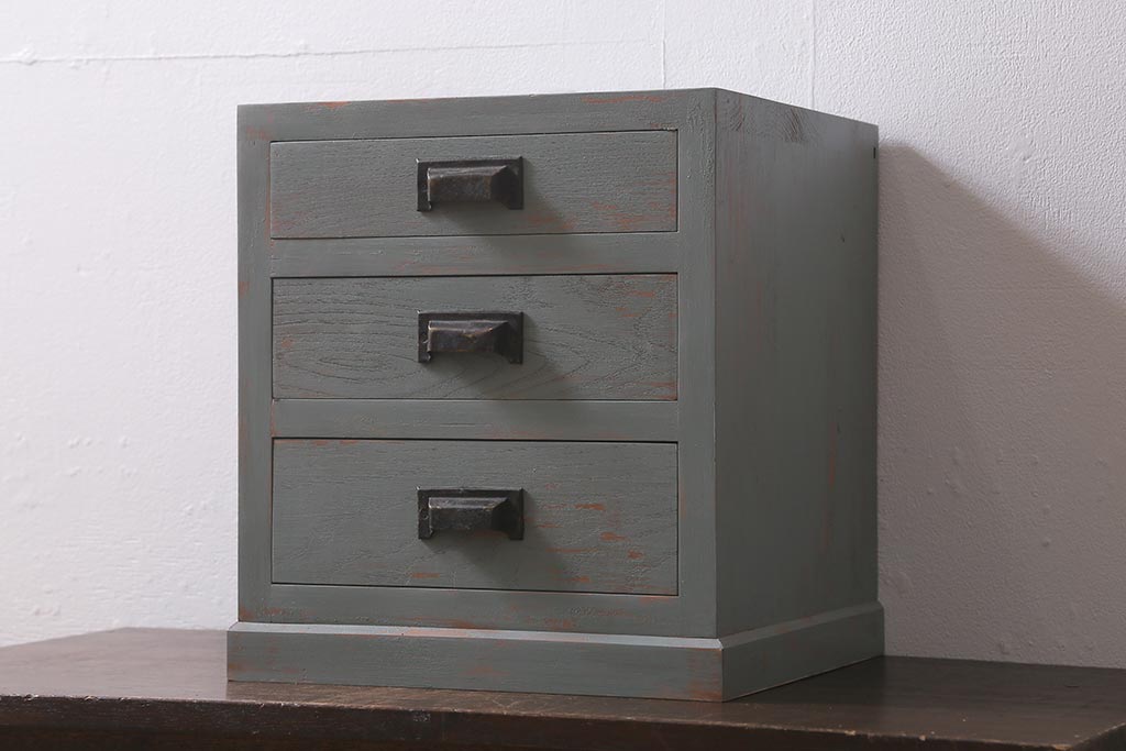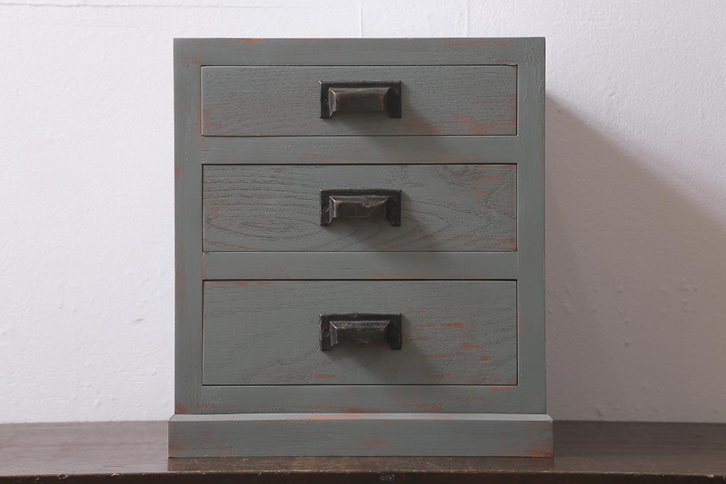 ラフジュ工房オリジナル 古金具リメイク 前板栗材 ヒノキ材 シャビーなペイント小引き出し(小物収納)(R-041355)です。