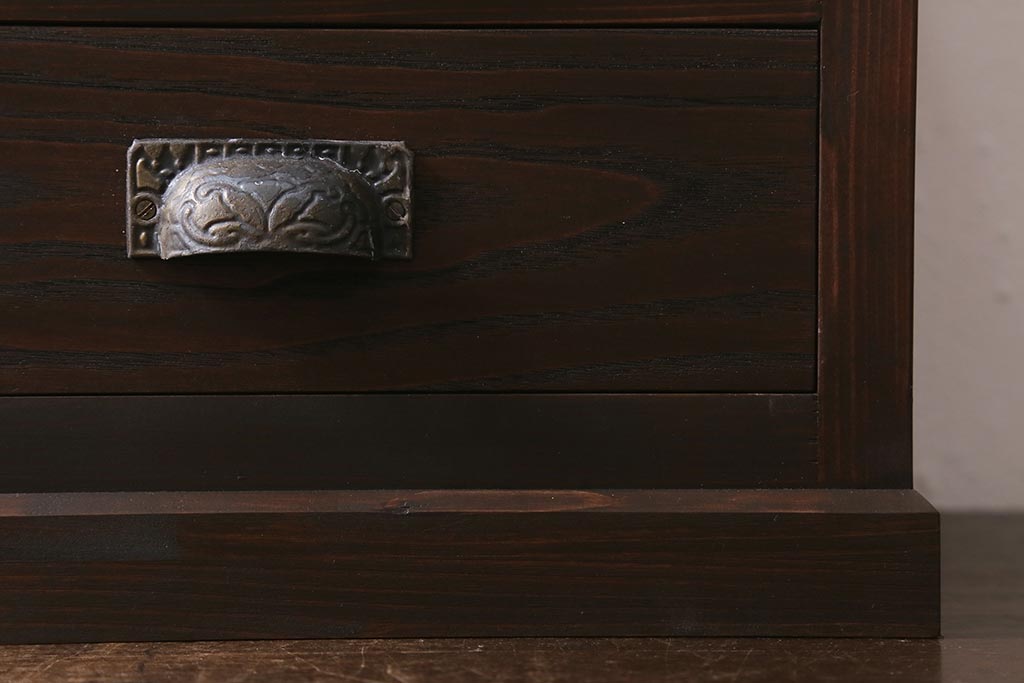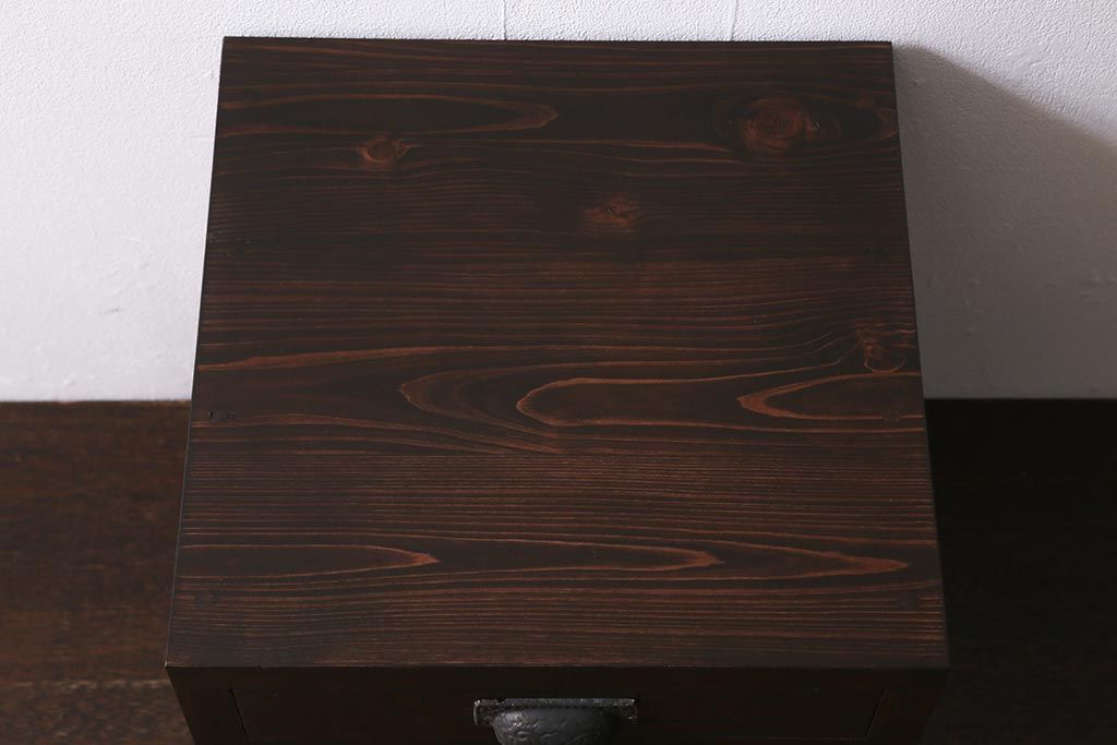 ラフジュ工房オリジナル 古金具リメイク 前板栗材 ヒノキ材 シックな引手の小引き出し(小物収納)(R-041360)です。