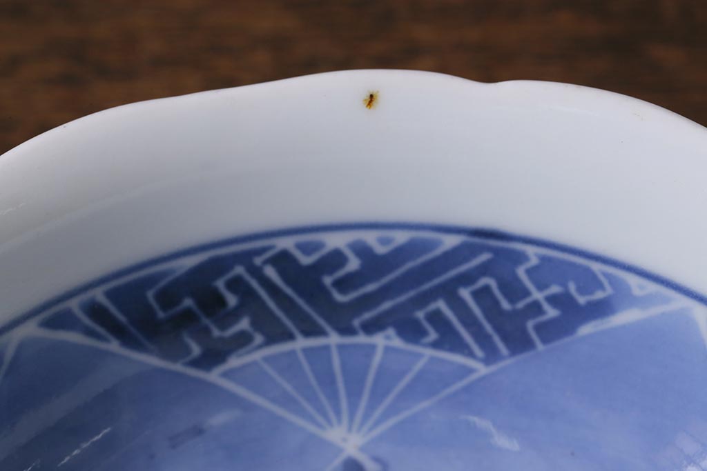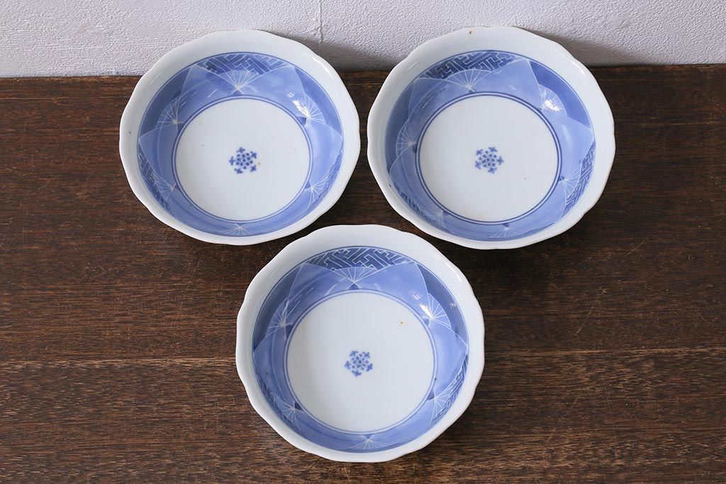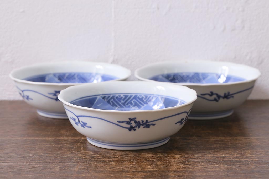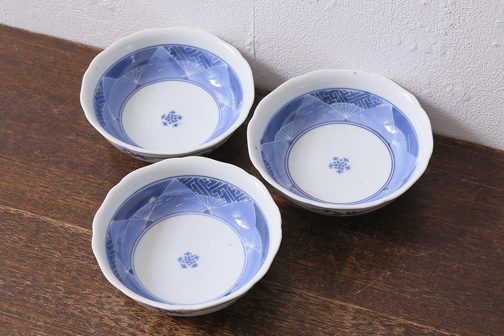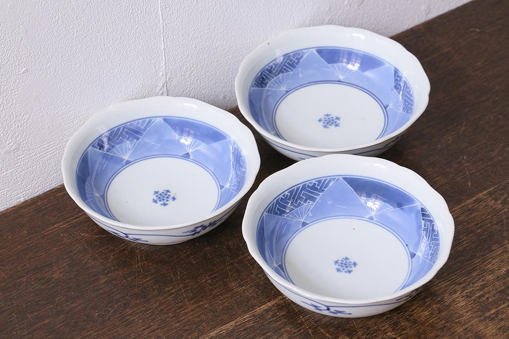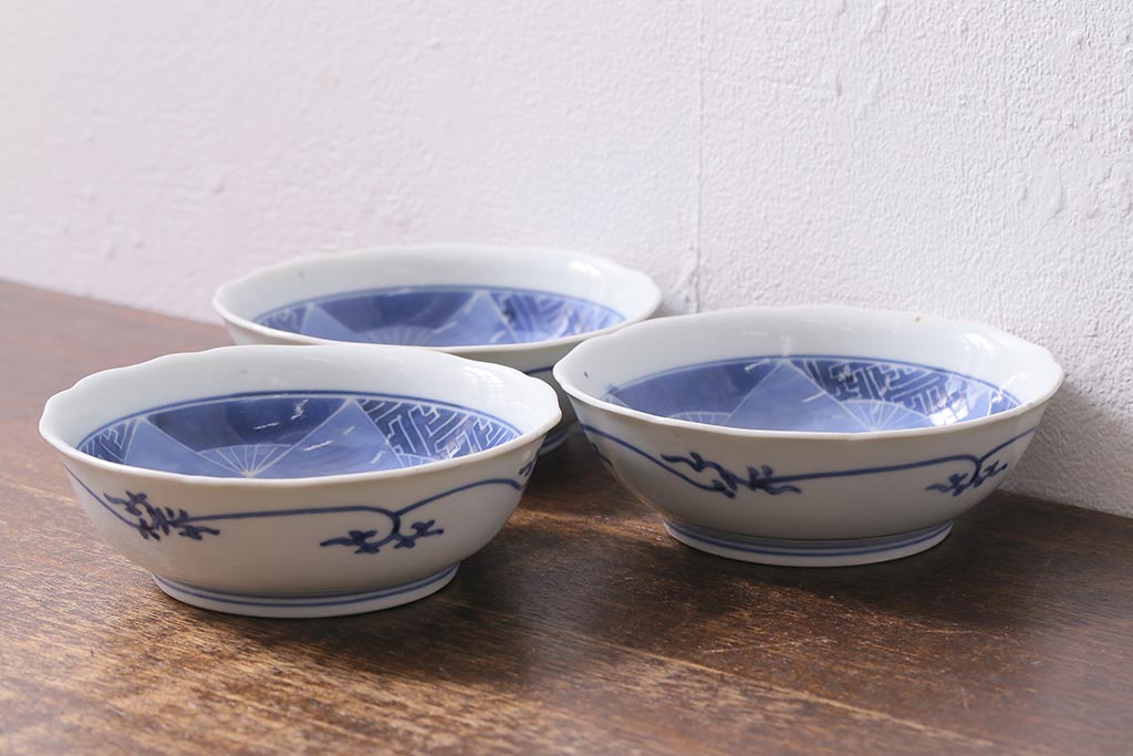 ラフジュ工房> 和食器・茶道具> 皿 > アンティーク雑貨 江戸期 古伊万里 染付 扇面図 なます皿3枚セット(深皿)(R-041120)