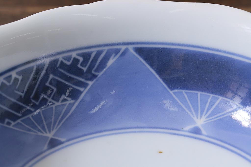 ラフジュ工房> 和食器・茶道具 > アンティーク雑貨 江戸期 古伊万里 染付 扇面図 なます皿3枚セット(深皿)(R-041120)