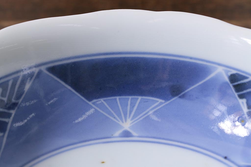 ラフジュ工房> 骨董・美術品> 骨董-陶磁器 > アンティーク雑貨 江戸期 古伊万里 染付 扇面図 なます皿3枚セット(深皿)(R-041120)