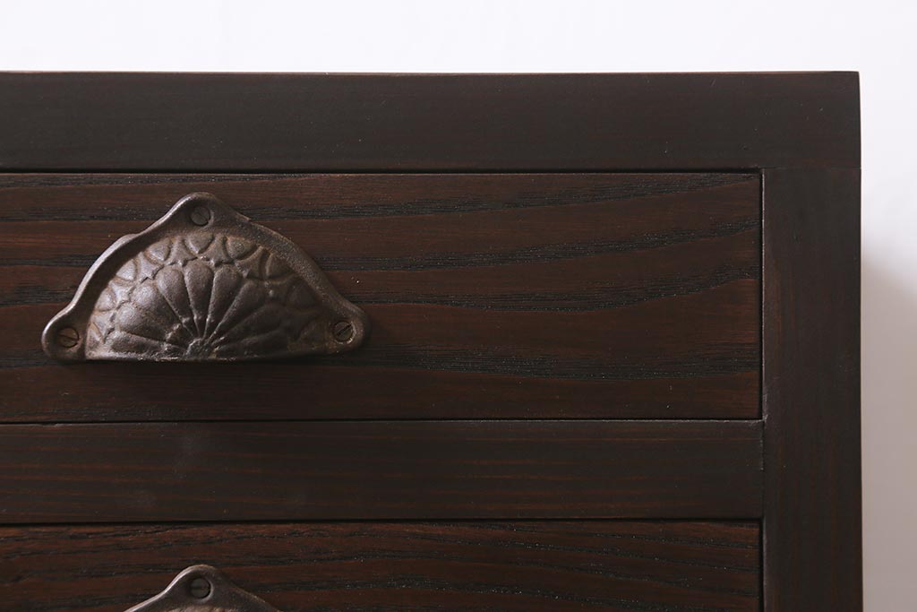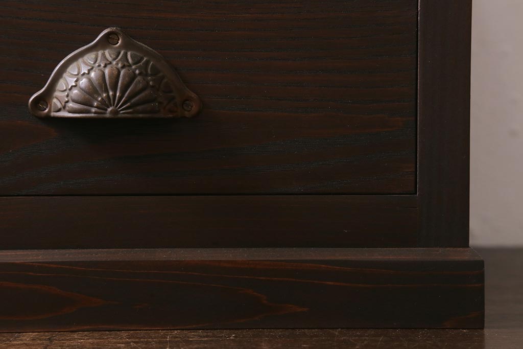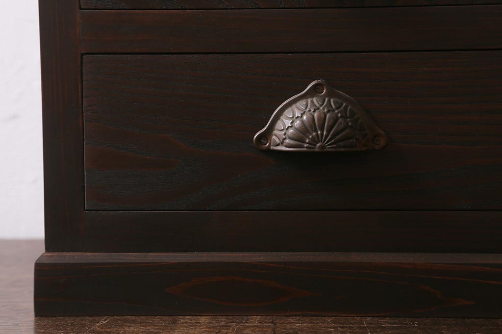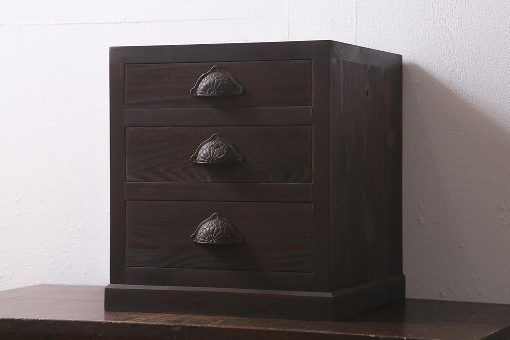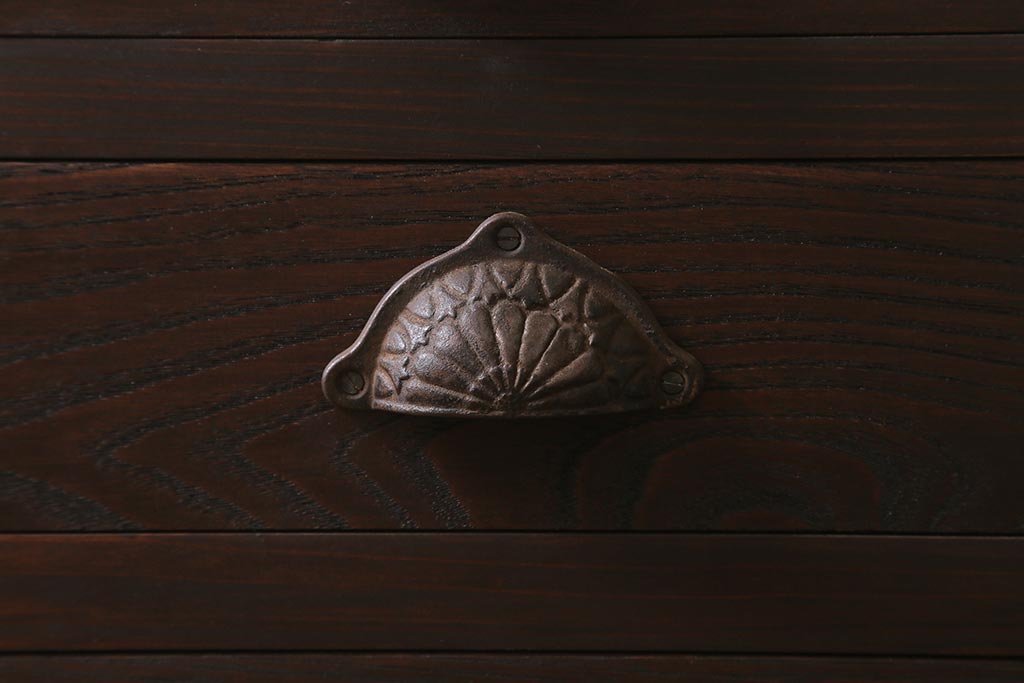 ラフジュ工房オリジナル 古金具リメイク 前板栗材 ヒノキ材 シックな引手の小引き出し(小物収納)(R-041362)
