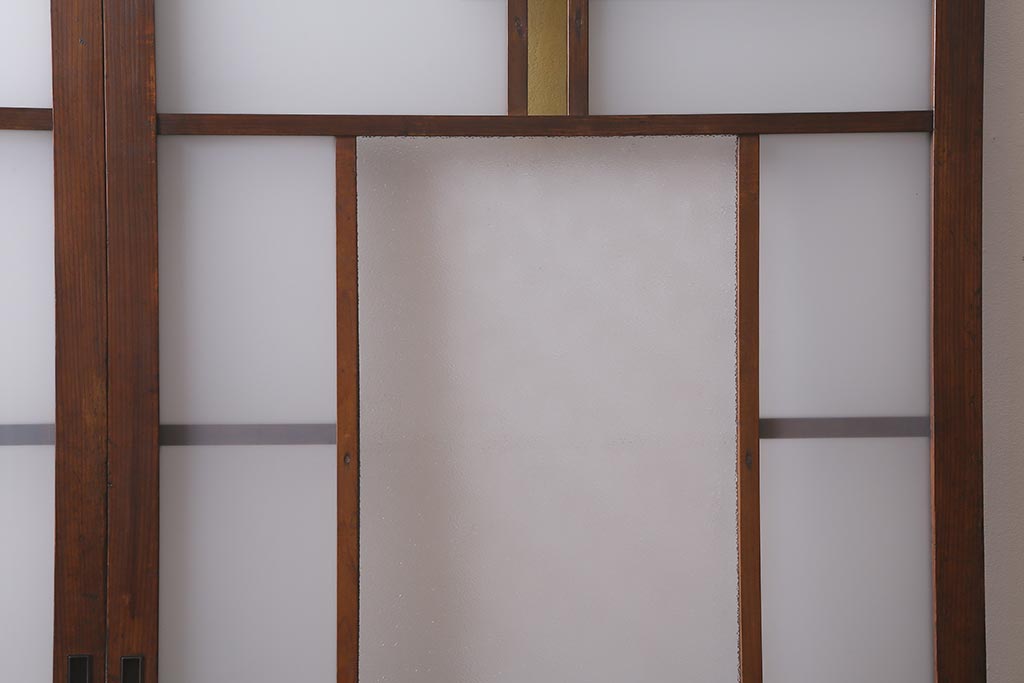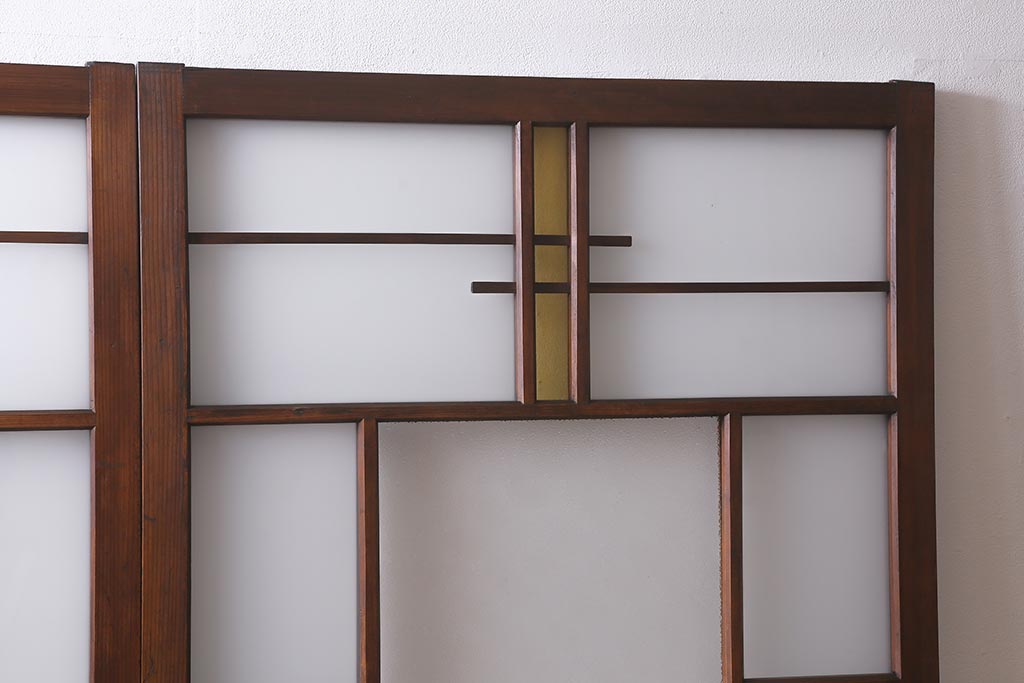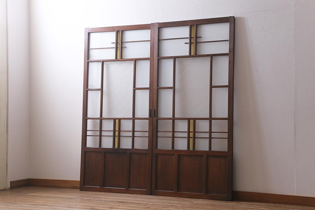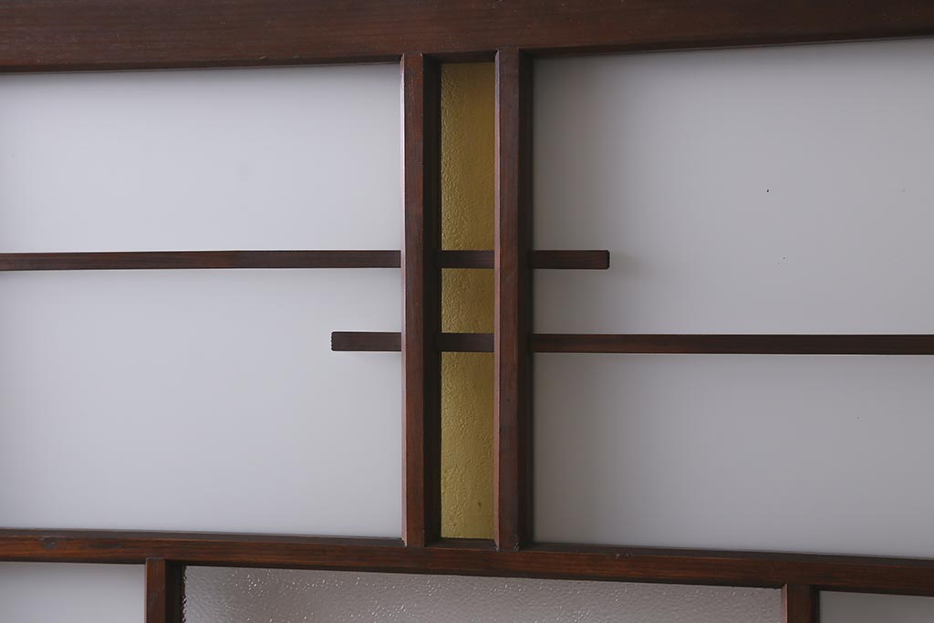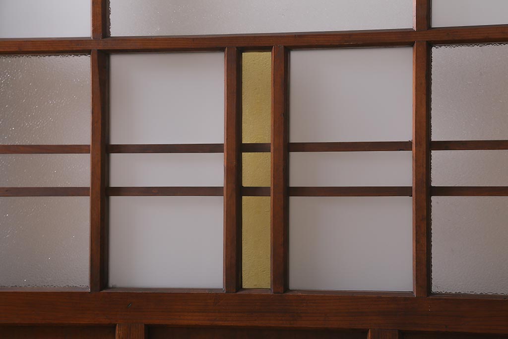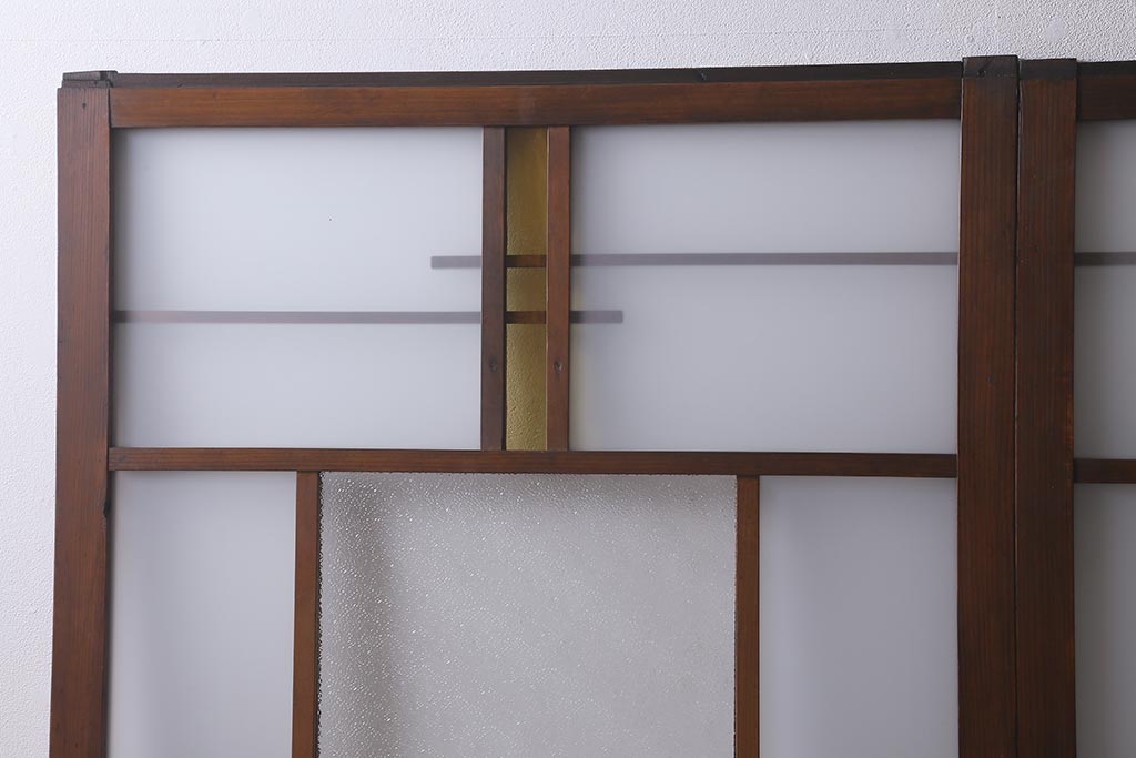 ドア・建具> 色ガラス・ステンド入り建具 > アンティーク建具 和製アンティーク 昭和初期 色ガラス・ダイヤガラス・すりガラス入り 色ガラスが目を引くガラス戸2枚セット(引き戸、建具)(R-041407)