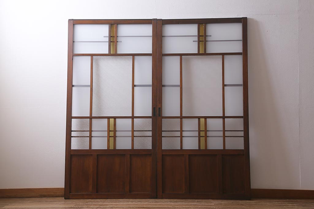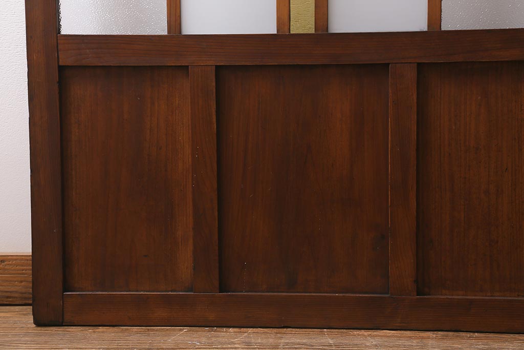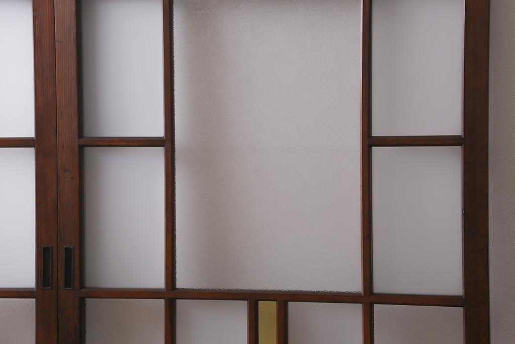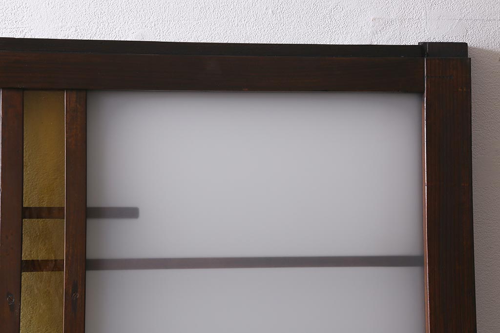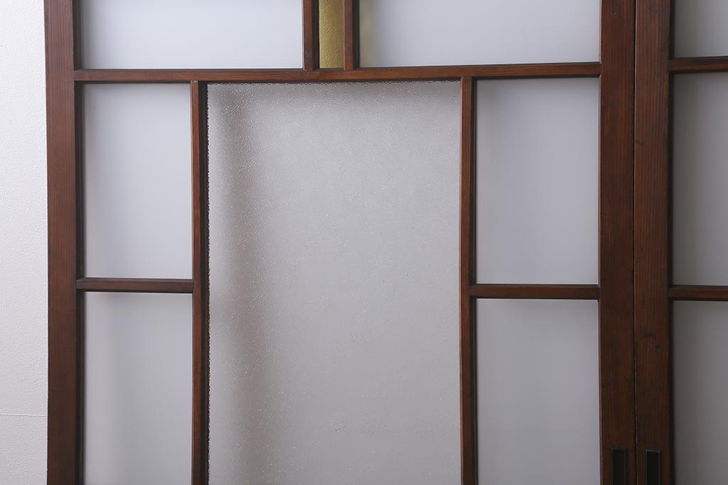 アンティーク建具 和製アンティーク 昭和初期 色ガラス・ダイヤガラス・すりガラス入り 色ガラスが目を引くガラス戸2枚セット(引き戸、建具)(R-041407)