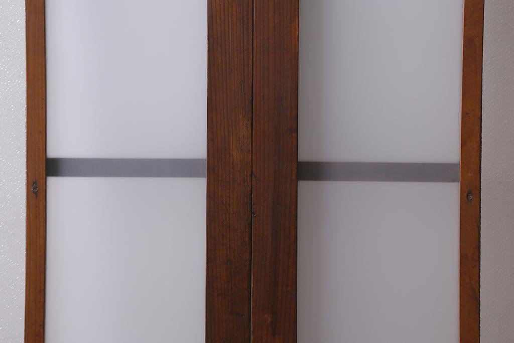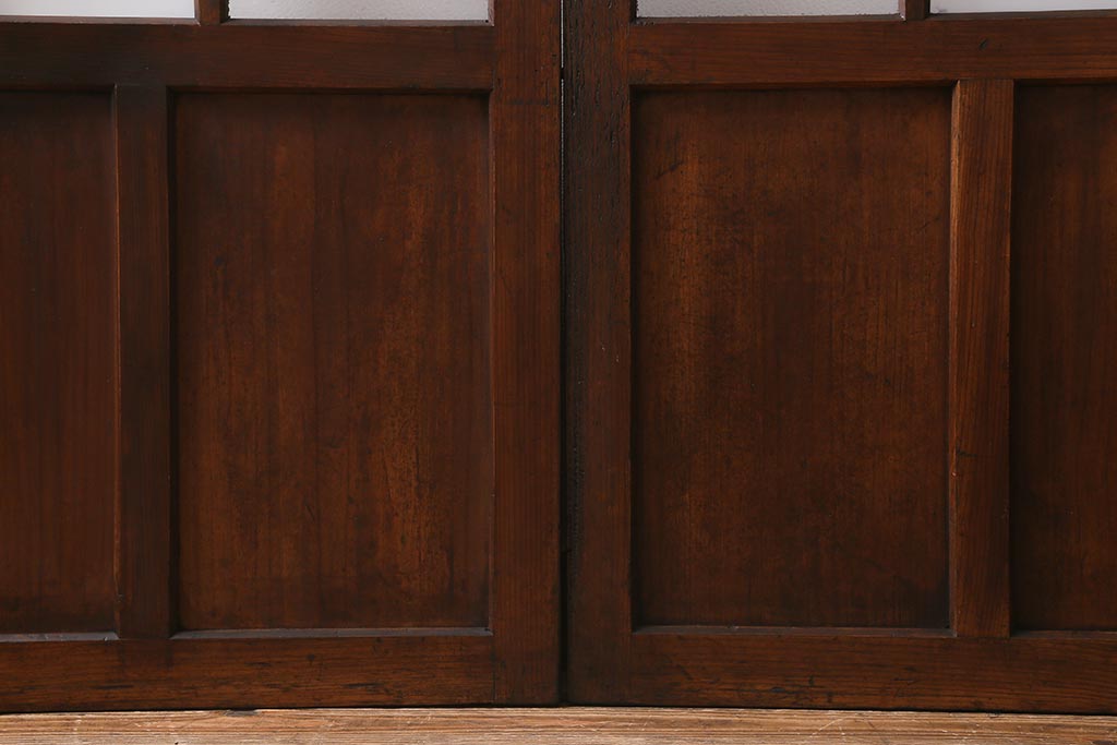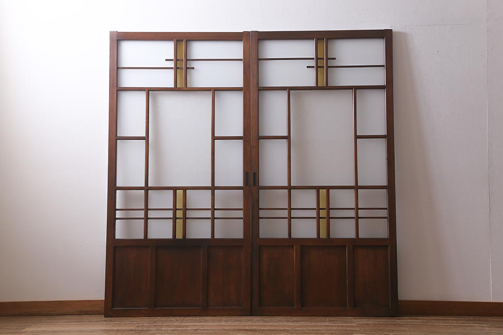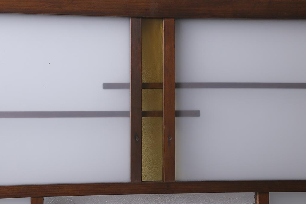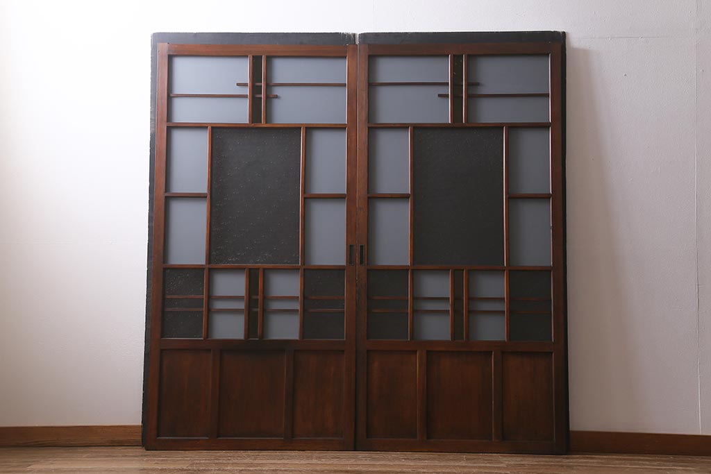 アンティーク建具 和製アンティーク 昭和初期 色ガラス・ダイヤガラス・すりガラス入り 色ガラスが目を引くガラス戸2枚セット(引き戸、建具)(R-041407)