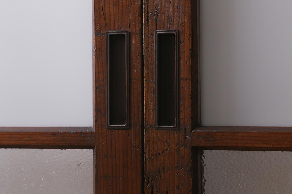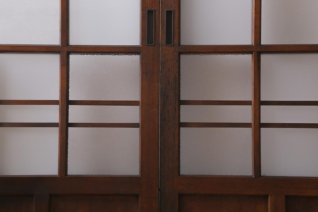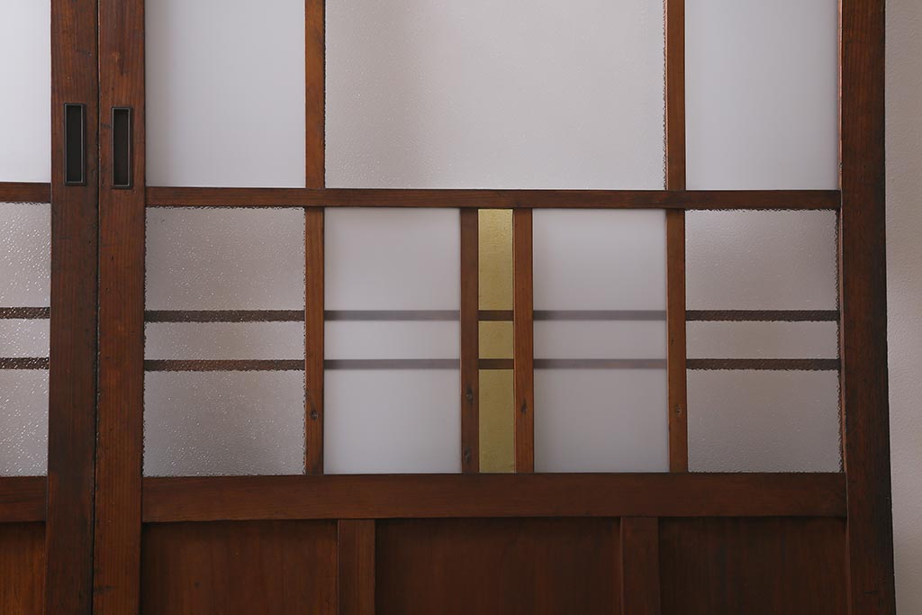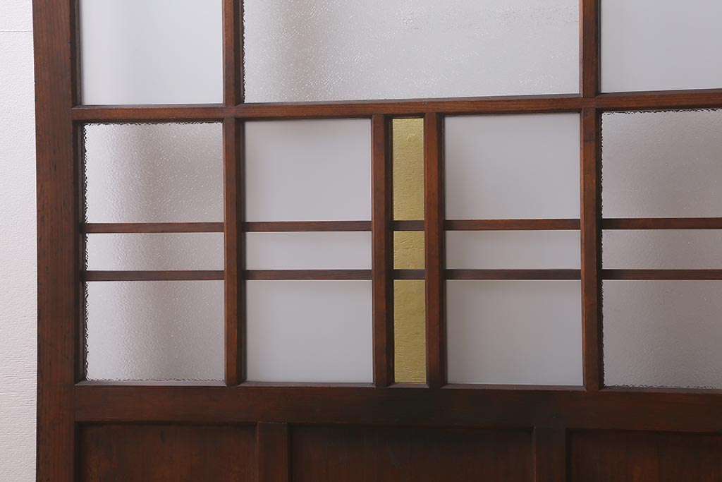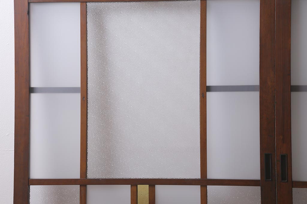 ドア・建具> 引き戸 > アンティーク建具 和製アンティーク 昭和初期 色ガラス・ダイヤガラス・すりガラス入り 色ガラスが目を引くガラス戸2枚セット(引き戸、建具)(R-041407)