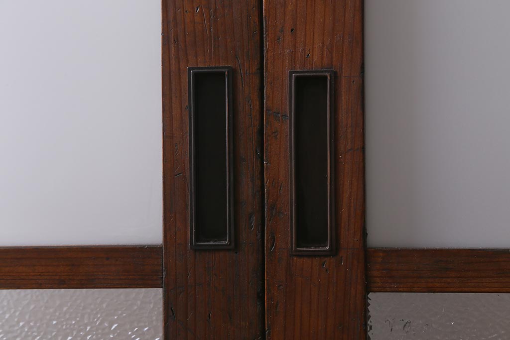 ドア・建具> 2枚・3枚セット > アンティーク建具 和製アンティーク 昭和初期 色ガラス・ダイヤガラス・すりガラス入り 色ガラスが目を引くガラス戸2枚セット(引き戸、建具)(R-041407)