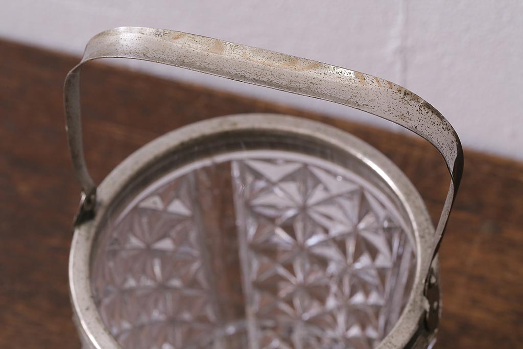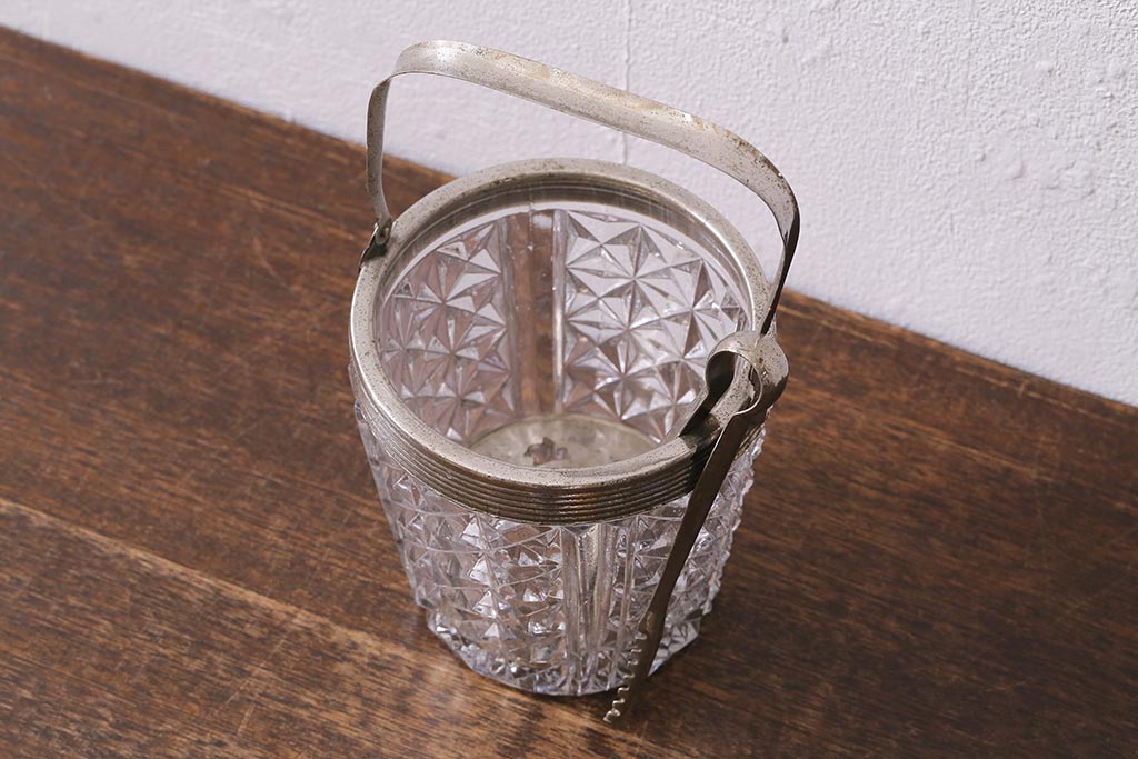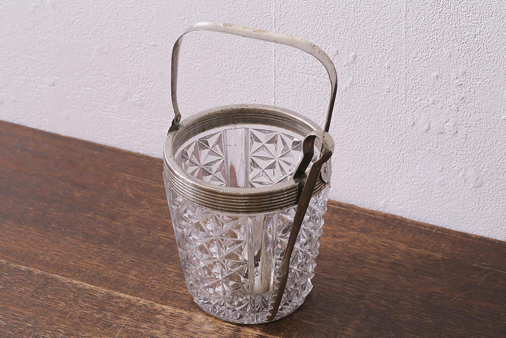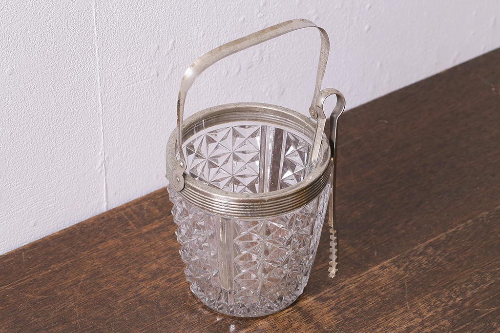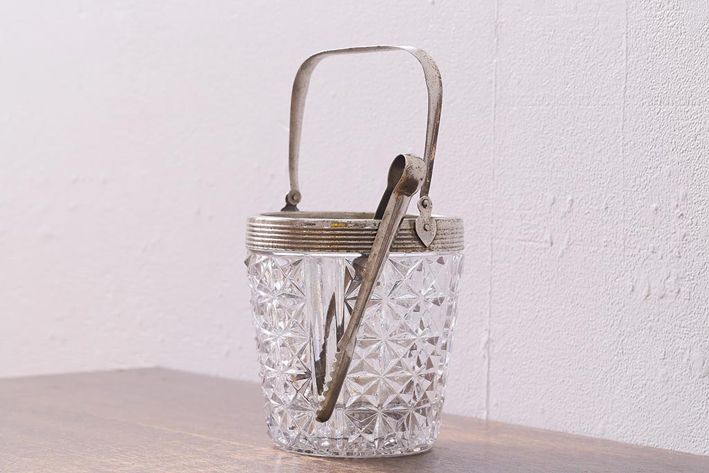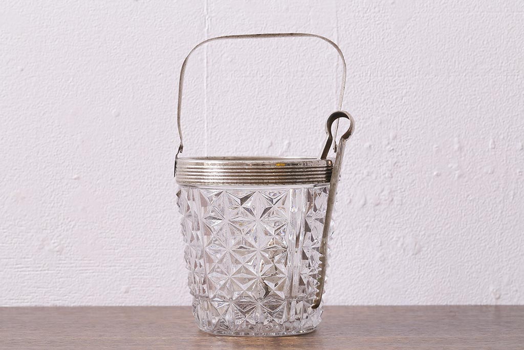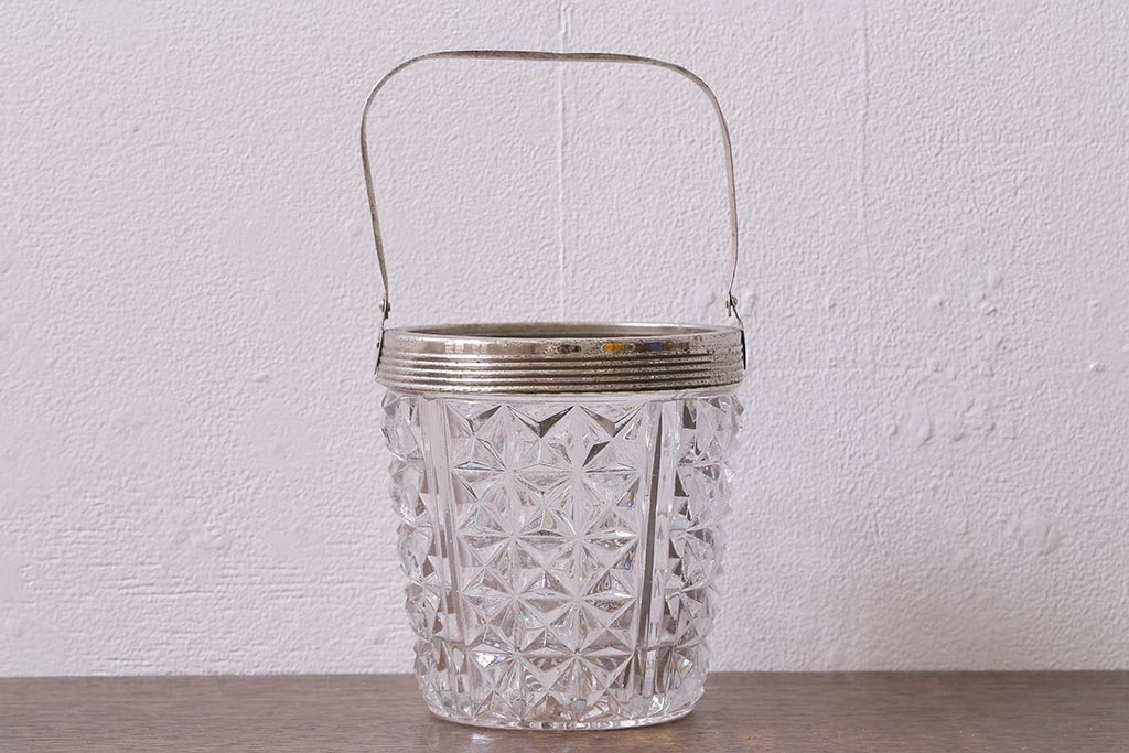 レトロ雑貨 昭和初期 プレスガラスのアイスペール(氷入れ)(R-041127)