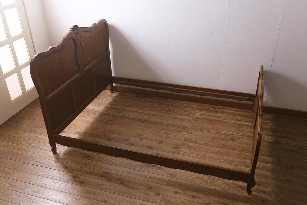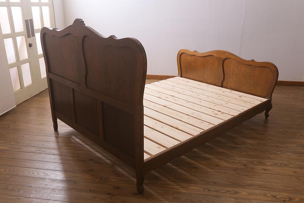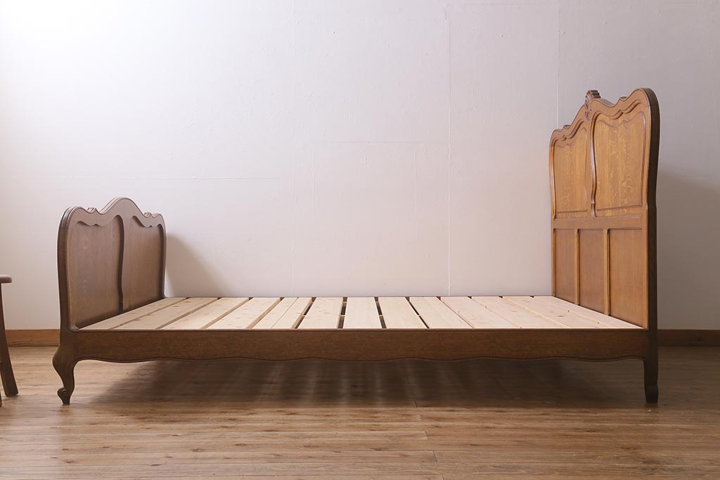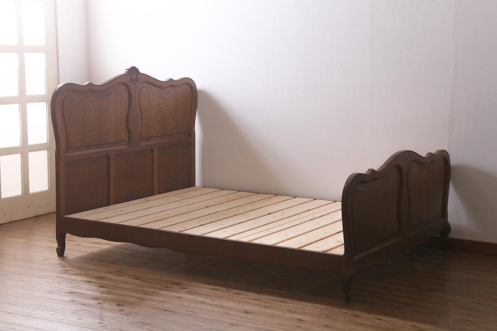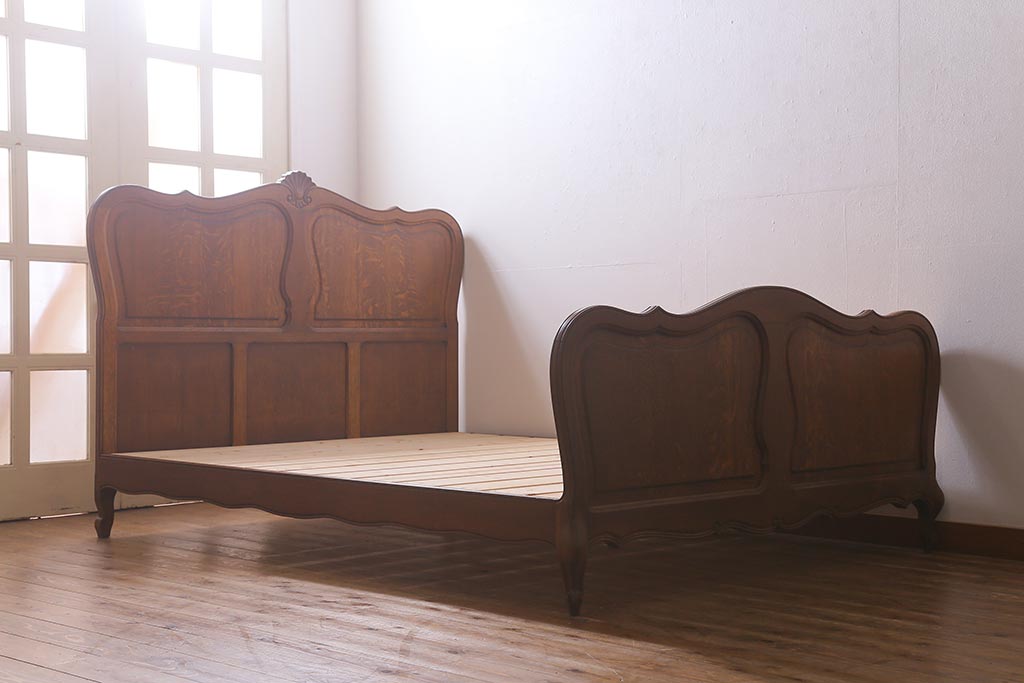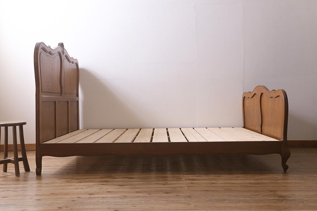 アンティーク家具 フランスアンティーク オーク材 上品なレリーフが目を引くベッドフレーム(R-041436)です。