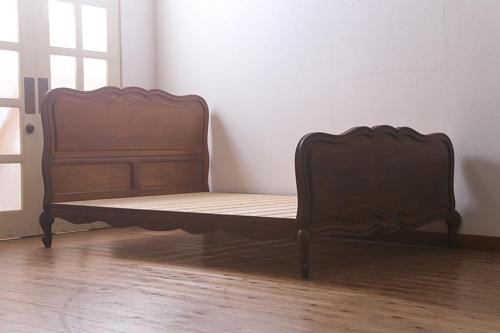 アンティーク家具 フランスアンティーク オーク材 曲線のシルエットが優雅なベッドフレーム(R-041437)です。