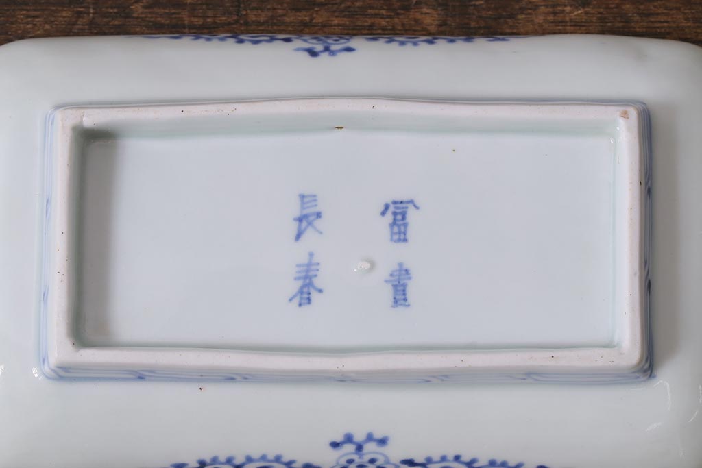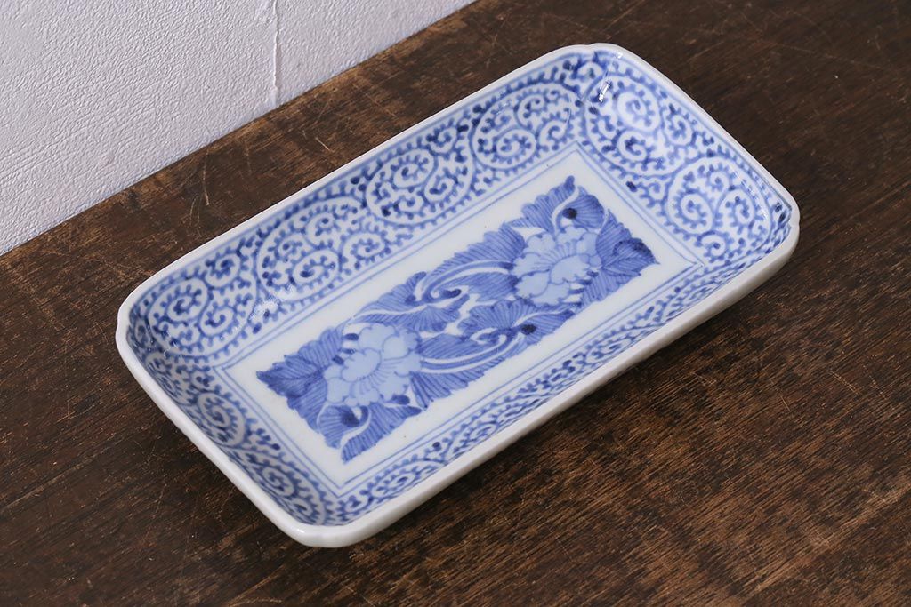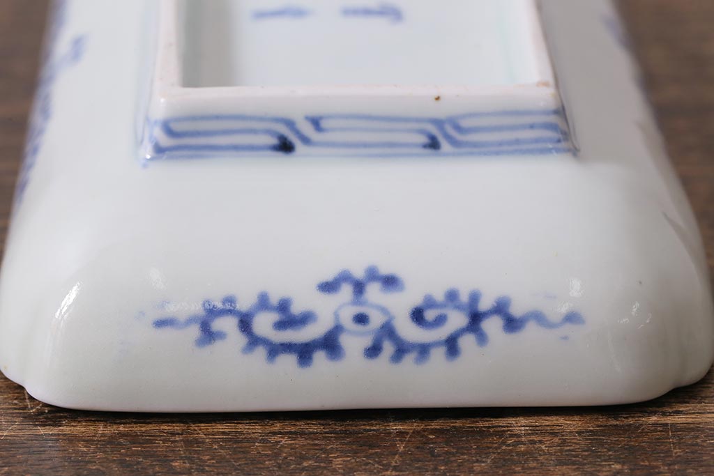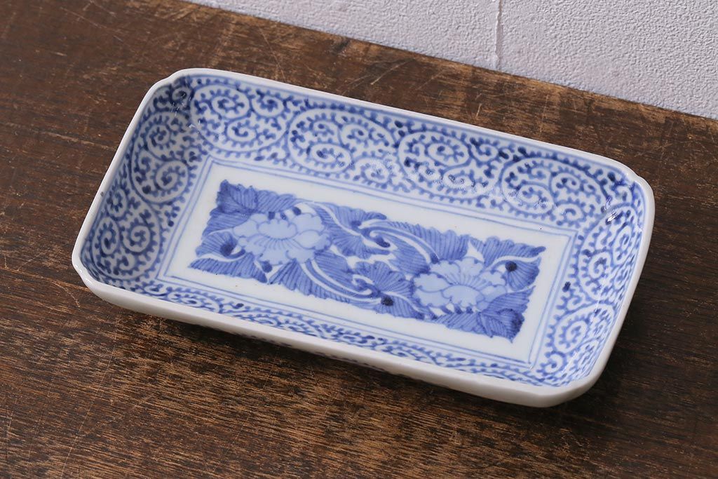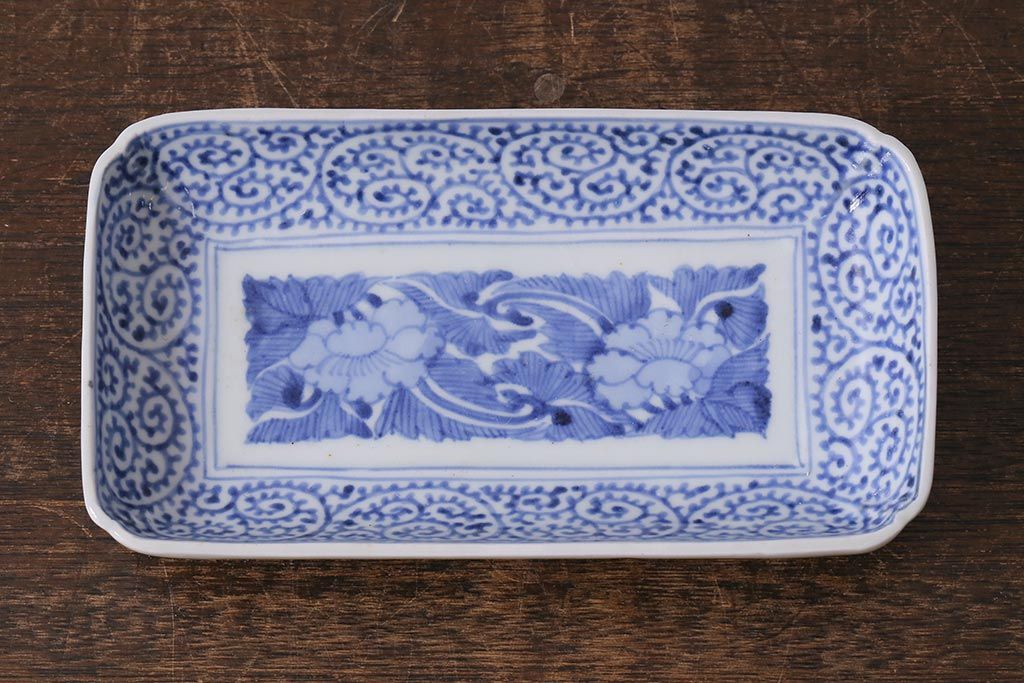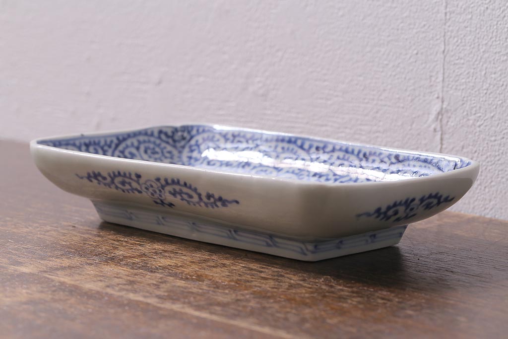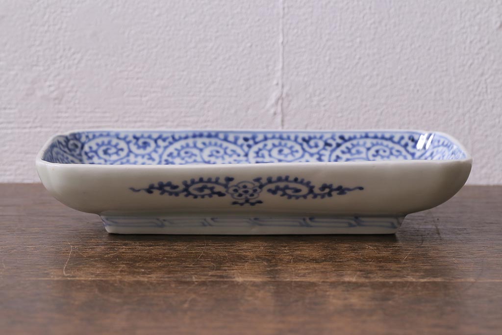 アンティーク雑貨 江戸期 古伊万里 冨貴長春 蛸唐草文長皿(和食器)(R-041306)
