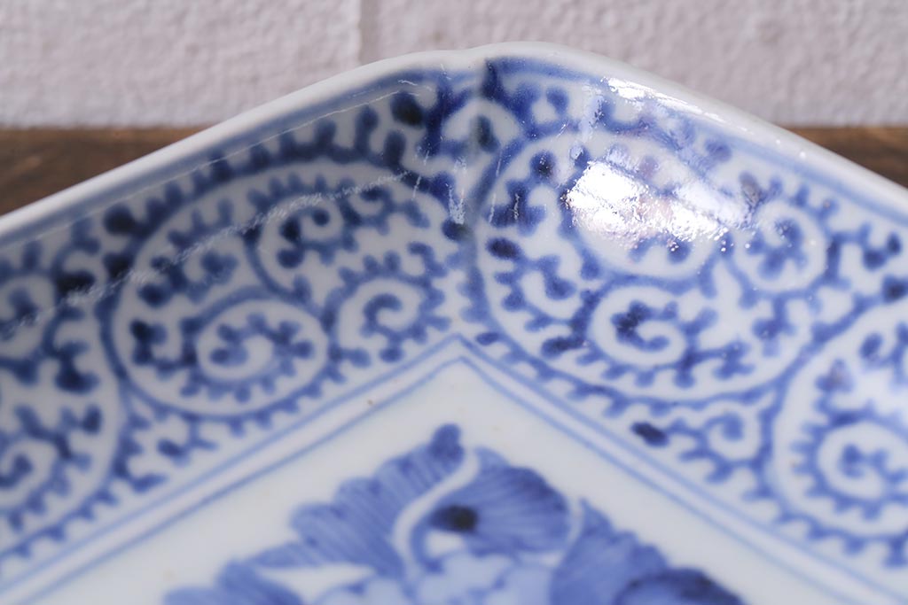ラフジュ工房> 和食器・茶道具> 皿 > アンティーク雑貨 江戸期 古伊万里 冨貴長春 蛸唐草文長皿(和食器)(R-041306)