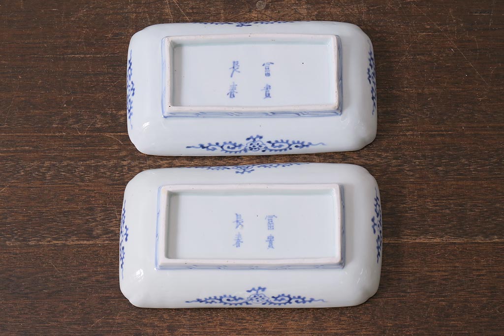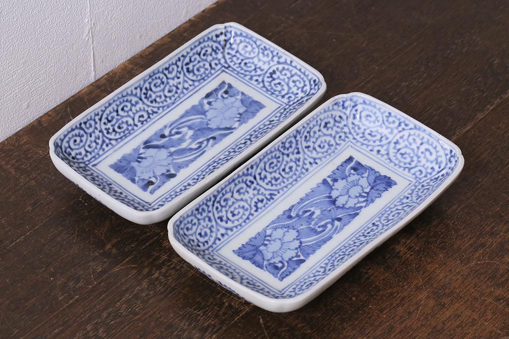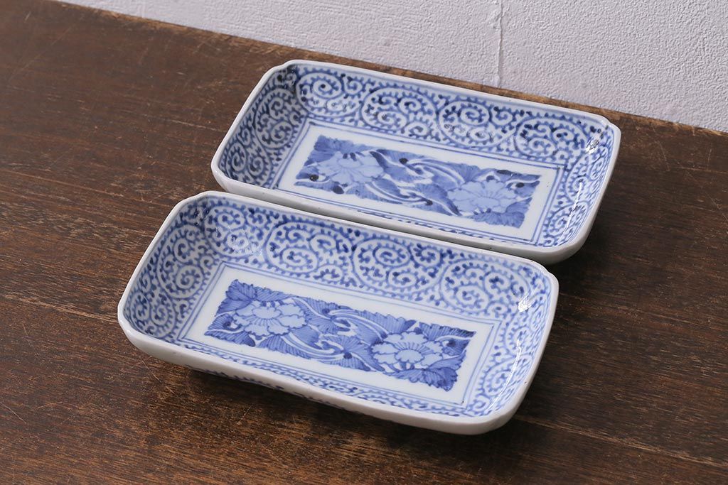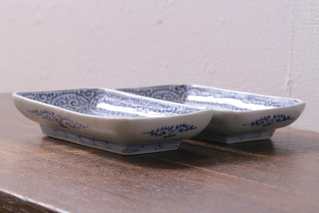 アンティーク雑貨 江戸期 古伊万里 冨貴長春 蛸唐草文長皿2枚セット(和食器)(R-041307)