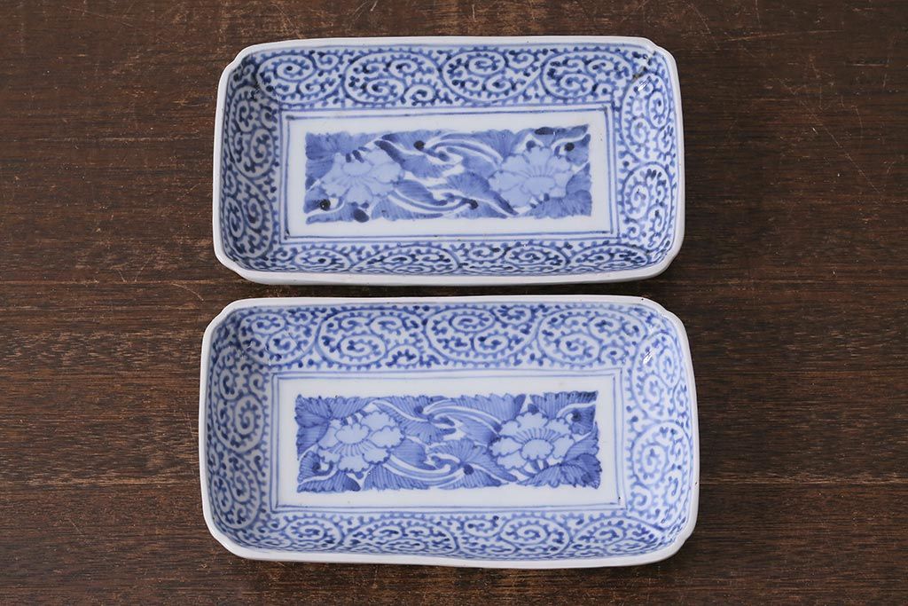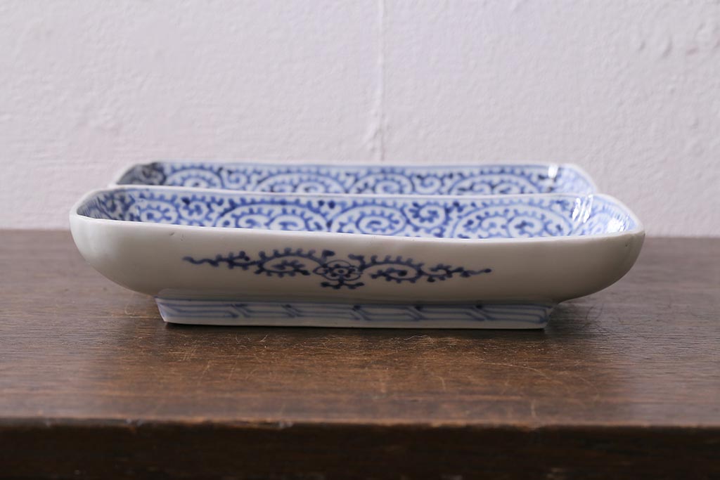 ラフジュ工房> 和食器・茶道具> 皿 > アンティーク雑貨 江戸期 古伊万里 冨貴長春 蛸唐草文長皿2枚セット(和食器)(R-041307)