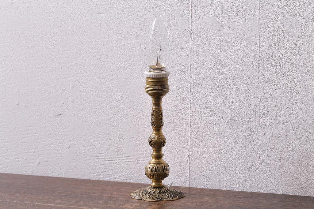 ヴィンテージ照明 真鍮製 クラシカルな雰囲気漂うテーブルランプ(スタンドライト、卓上照明、ビンテージ)(R-041379)