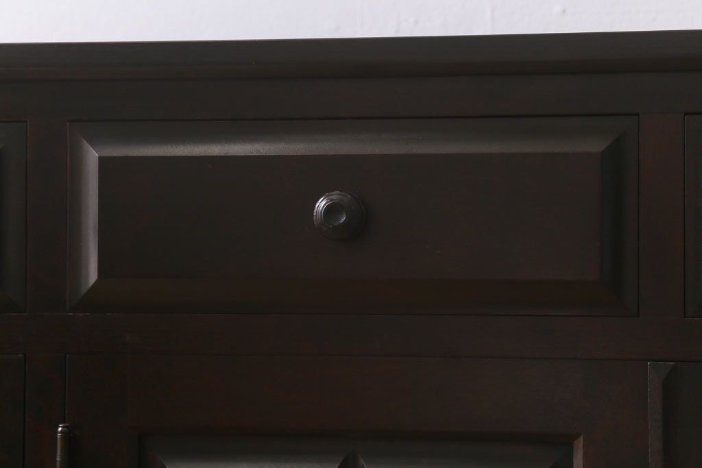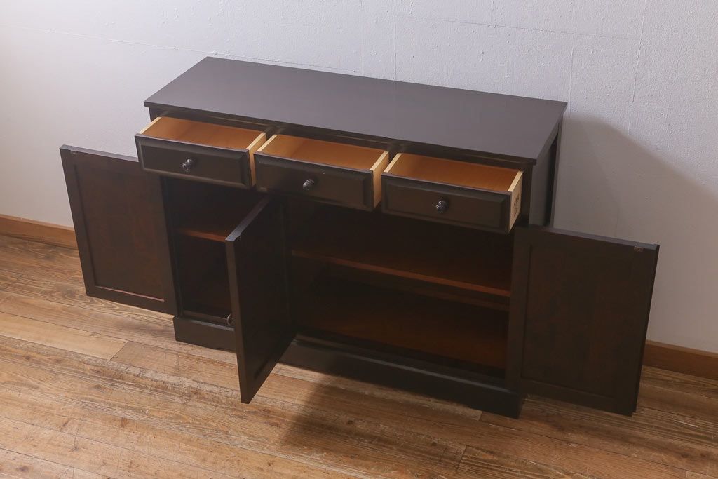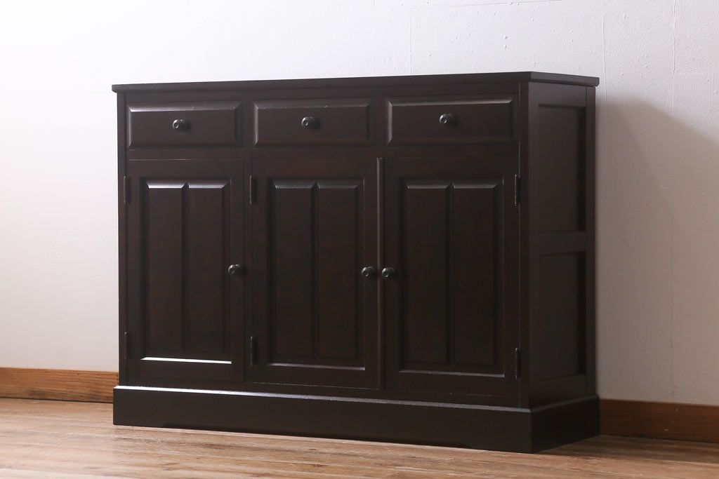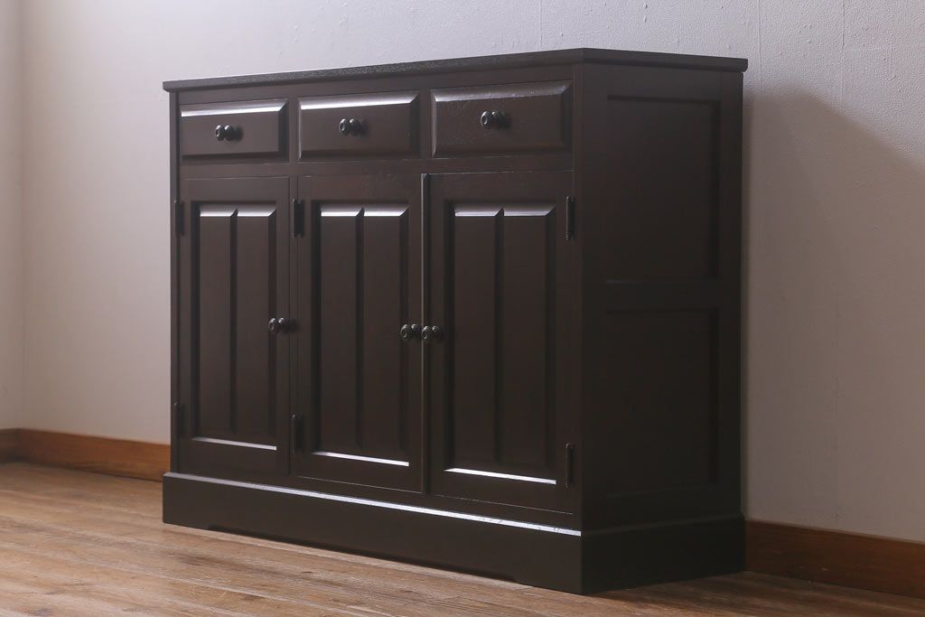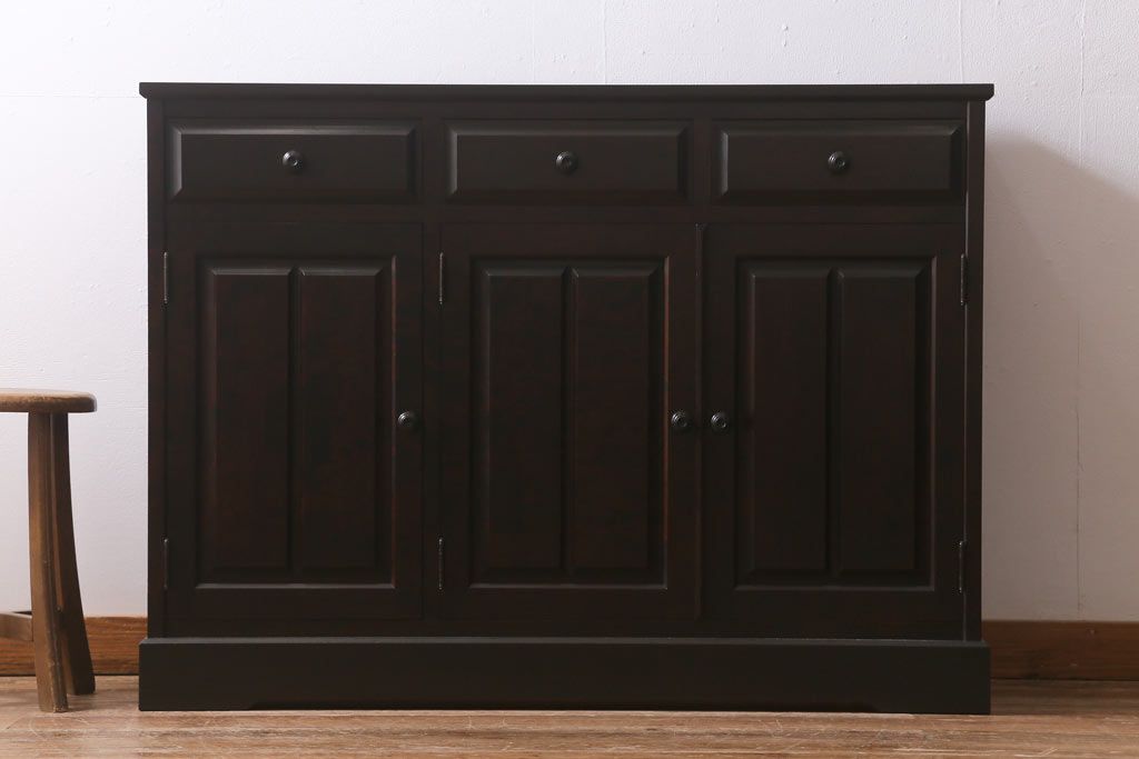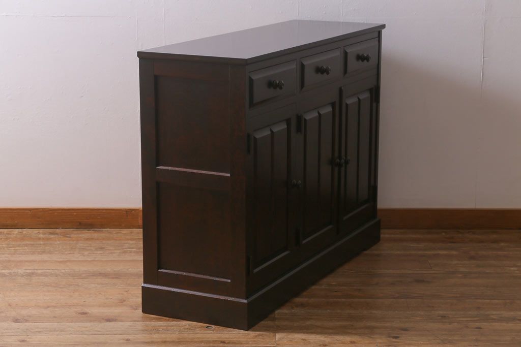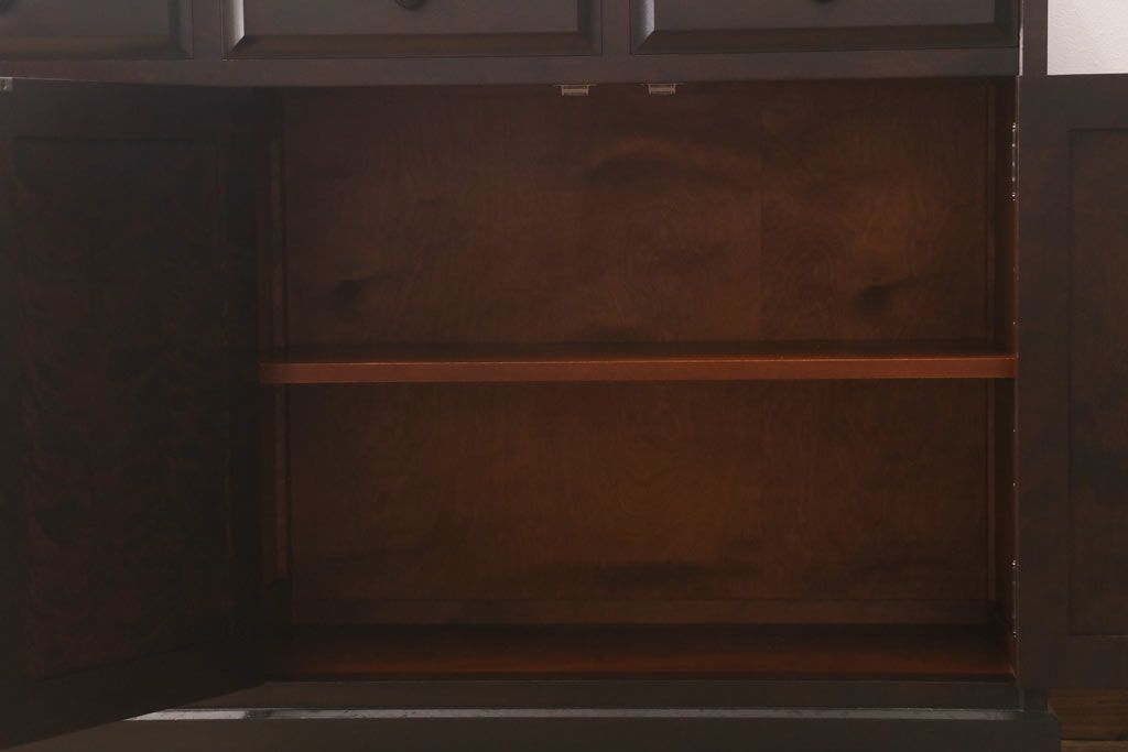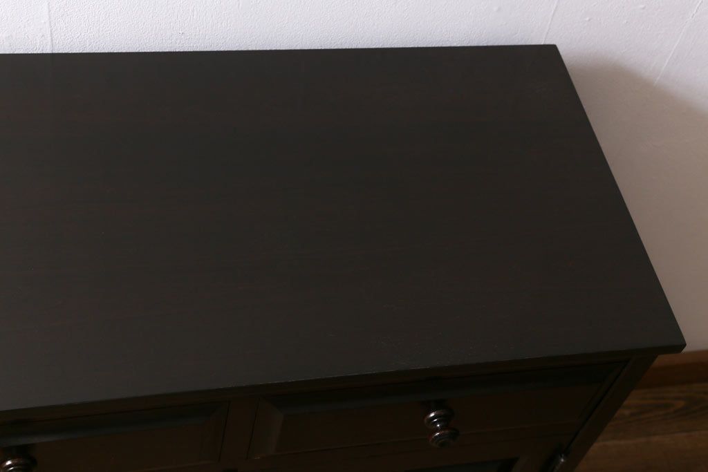 民芸家具 > 中古 北海道民芸家具 天板樺無垢材 大振りな食器棚をリメイクした上品な収納棚(食器棚、サイドボード)(R-041461)