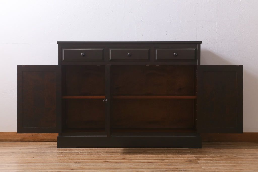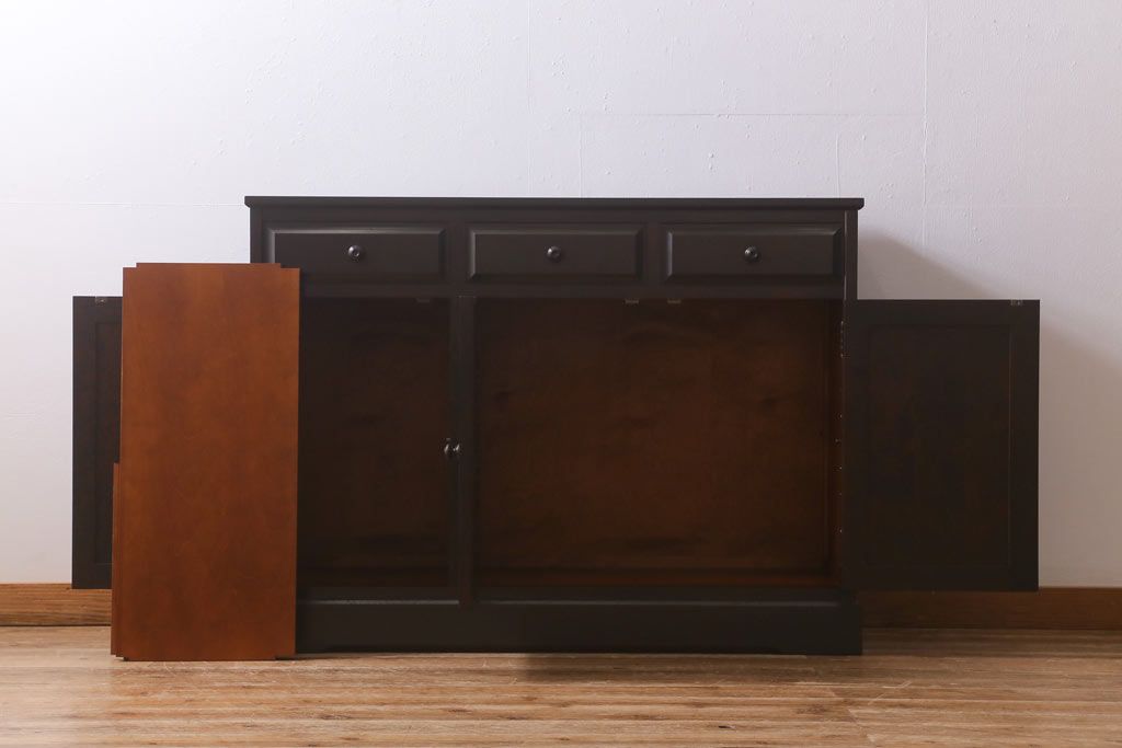 キャビネット・戸棚> サイドボード > 中古 北海道民芸家具 天板樺無垢材 大振りな食器棚をリメイクした上品な収納棚(食器棚、サイドボード)(R-041461)