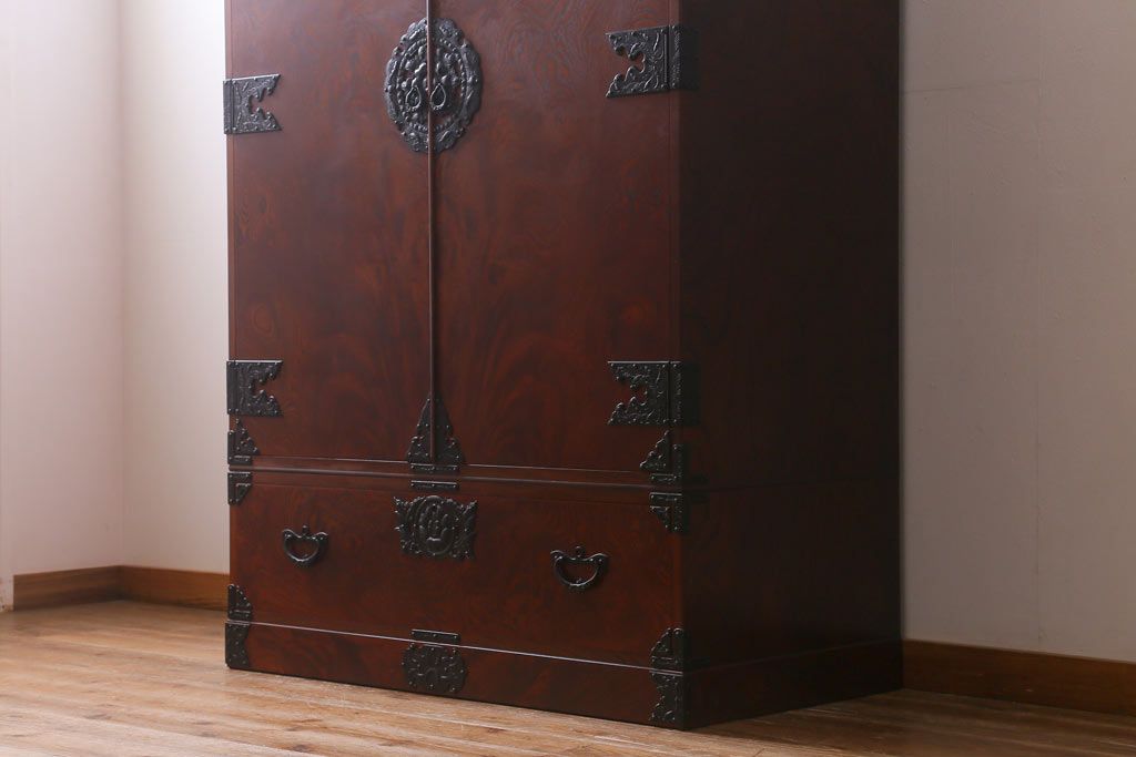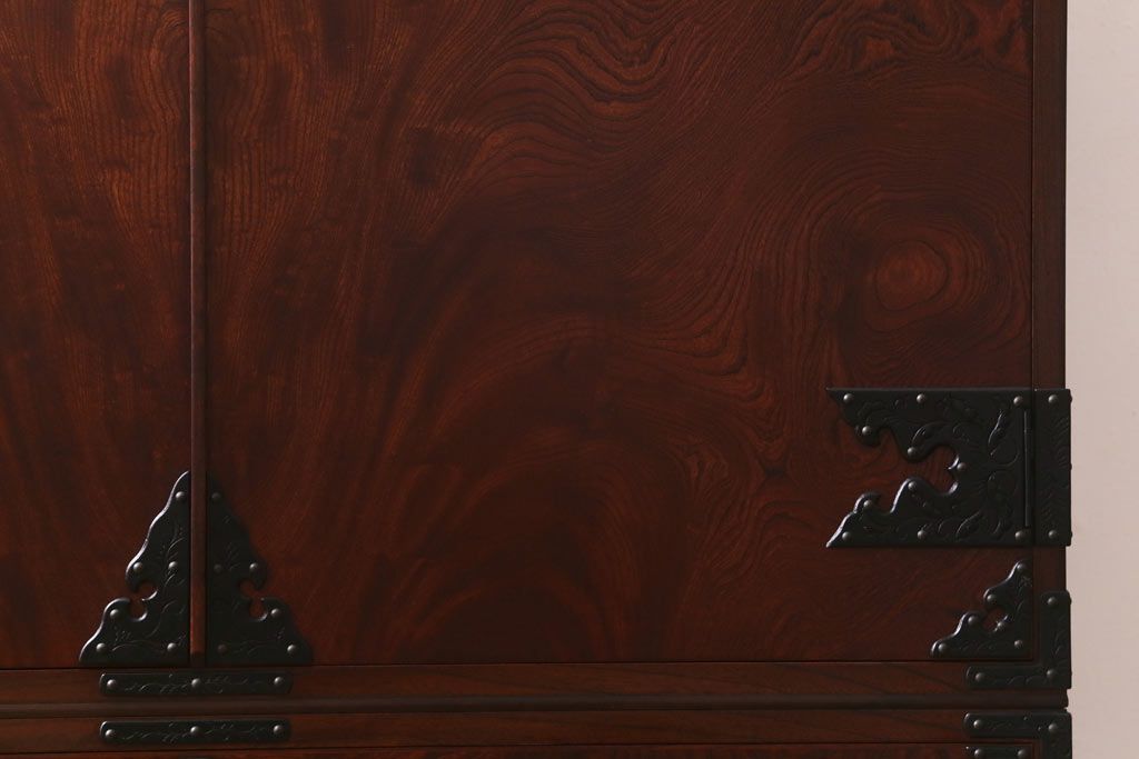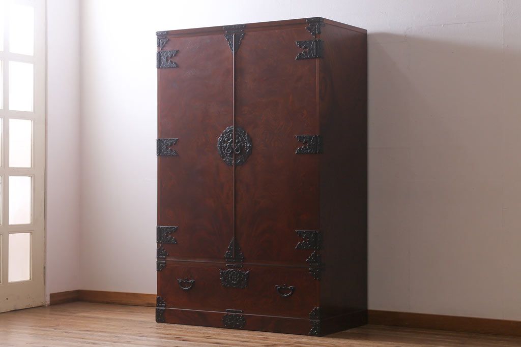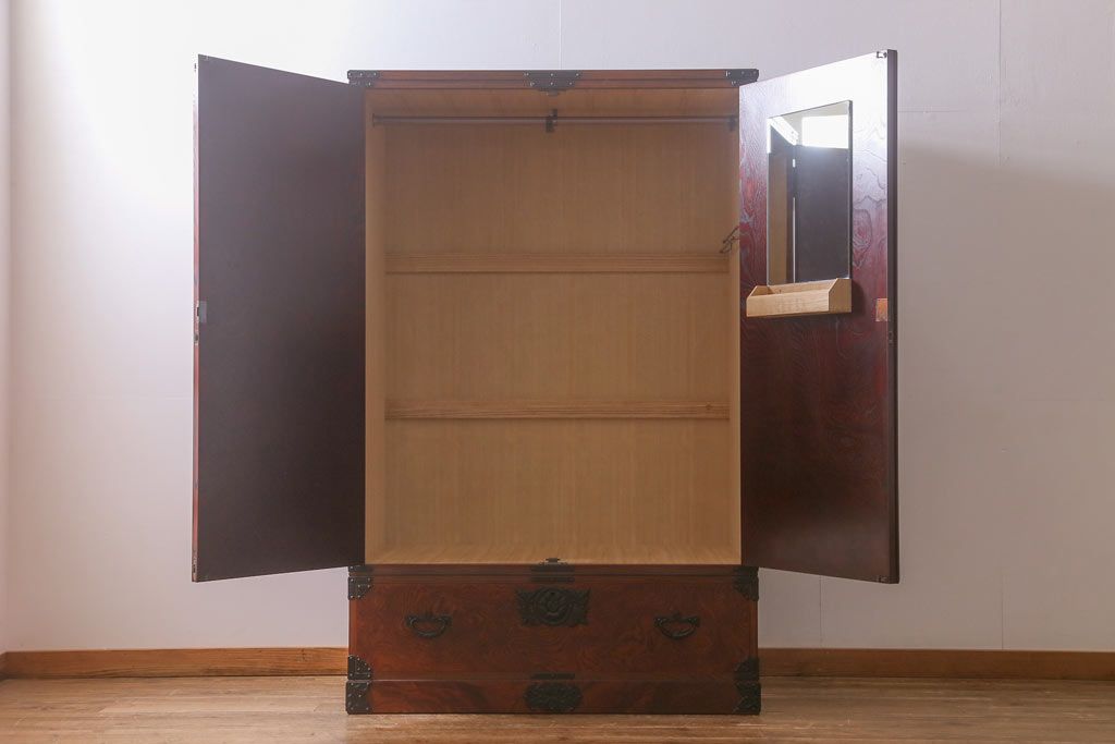 民芸家具 > 中古 伝統民芸家具 岩谷堂箪笥 漆塗り 味わい深い杢目が目を引く洋服タンス(ワードローブ)(R-041534)