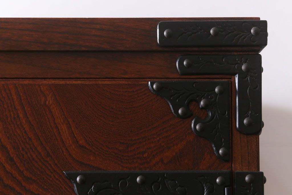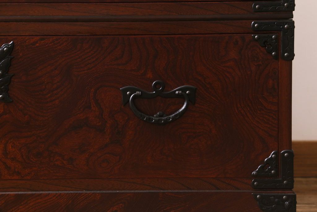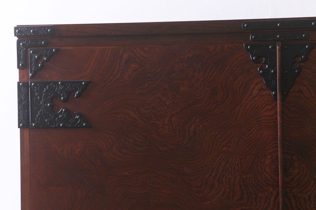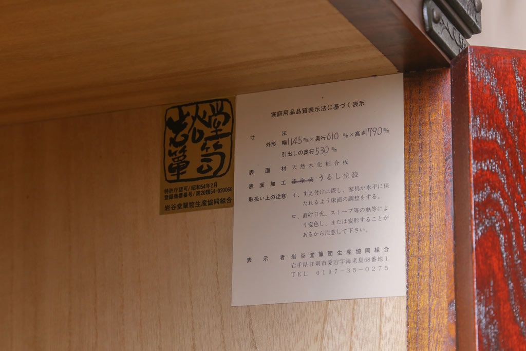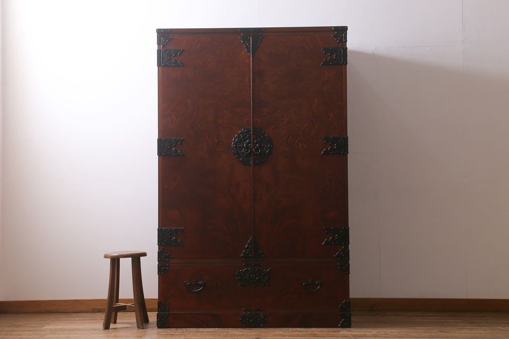民芸家具 > 中古 伝統民芸家具 岩谷堂箪笥 漆塗り 味わい深い杢目が目を引く洋服タンス(ワードローブ)(R-041534)