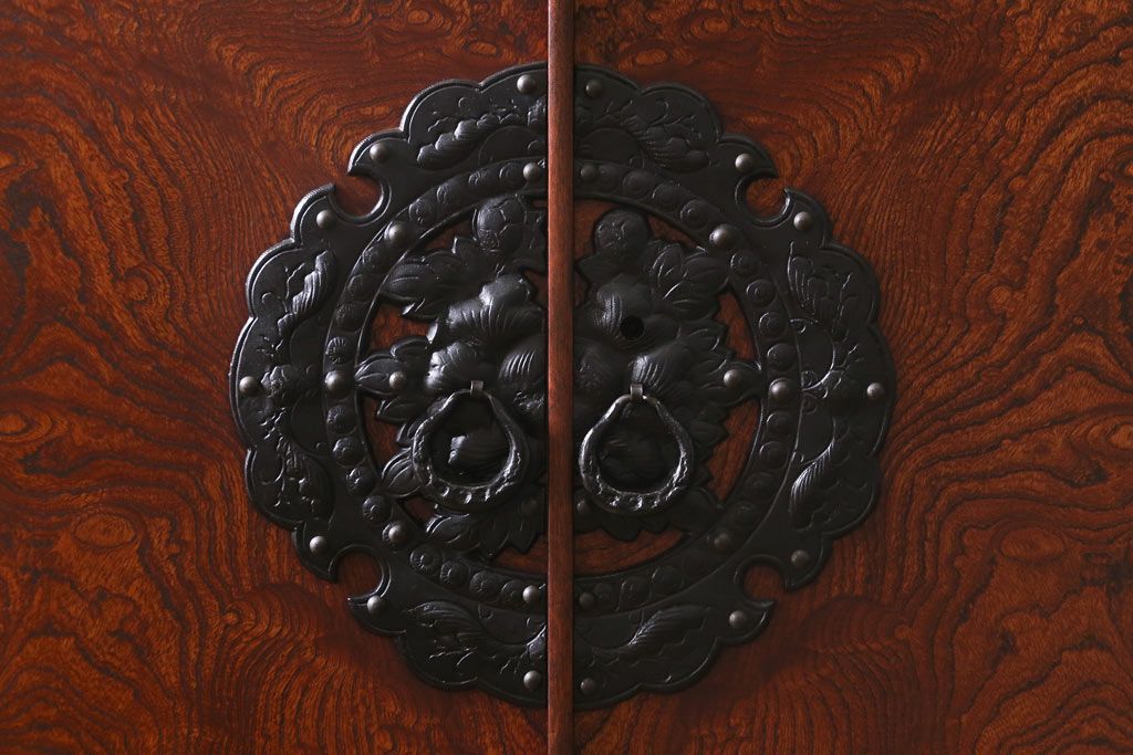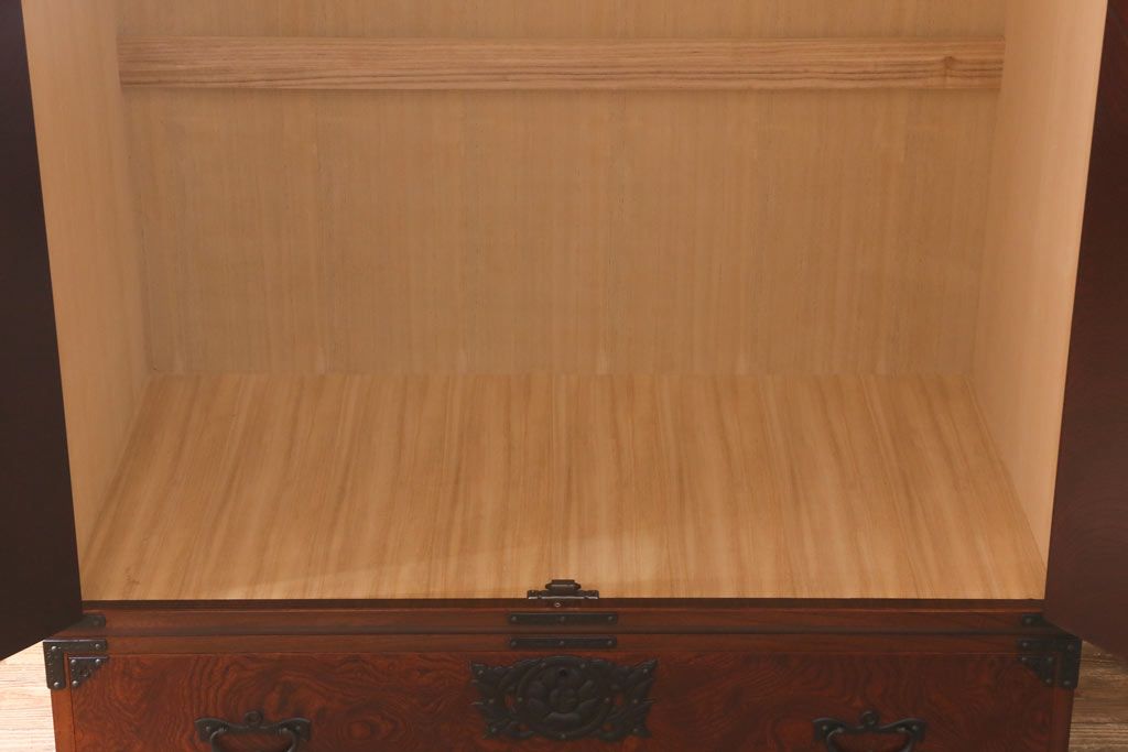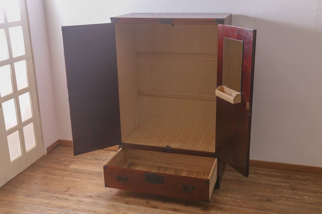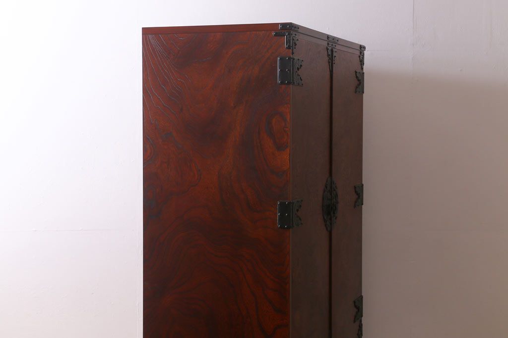 ワードローブ・ロッカー> ワードローブ > 中古 伝統民芸家具 岩谷堂箪笥 漆塗り 味わい深い杢目が目を引く洋服タンス(ワードローブ)(R-041534)
