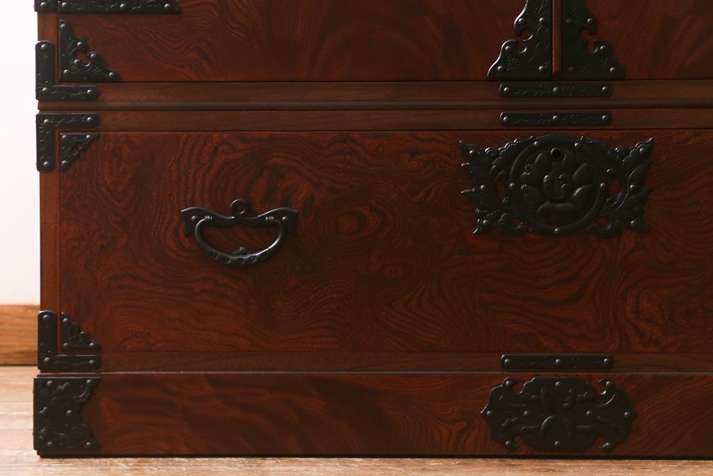 中古 伝統民芸家具 岩谷堂箪笥 漆塗り 味わい深い杢目が目を引く洋服タンス(ワードローブ)(R-041534)