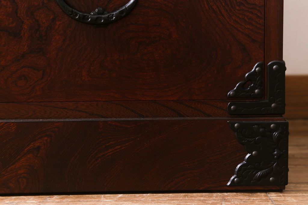 中古 伝統民芸家具 岩谷堂箪笥 漆塗り 味わい深い杢目が目を引く洋服タンス(ワードローブ)(R-041534)です。