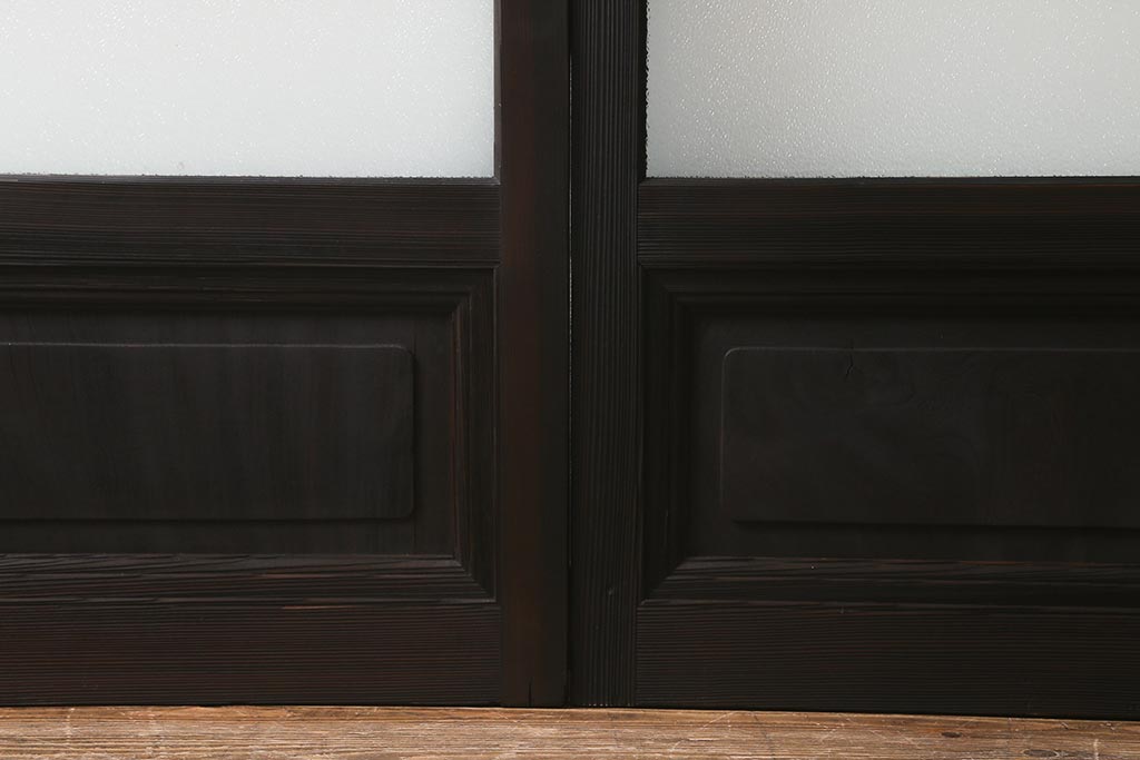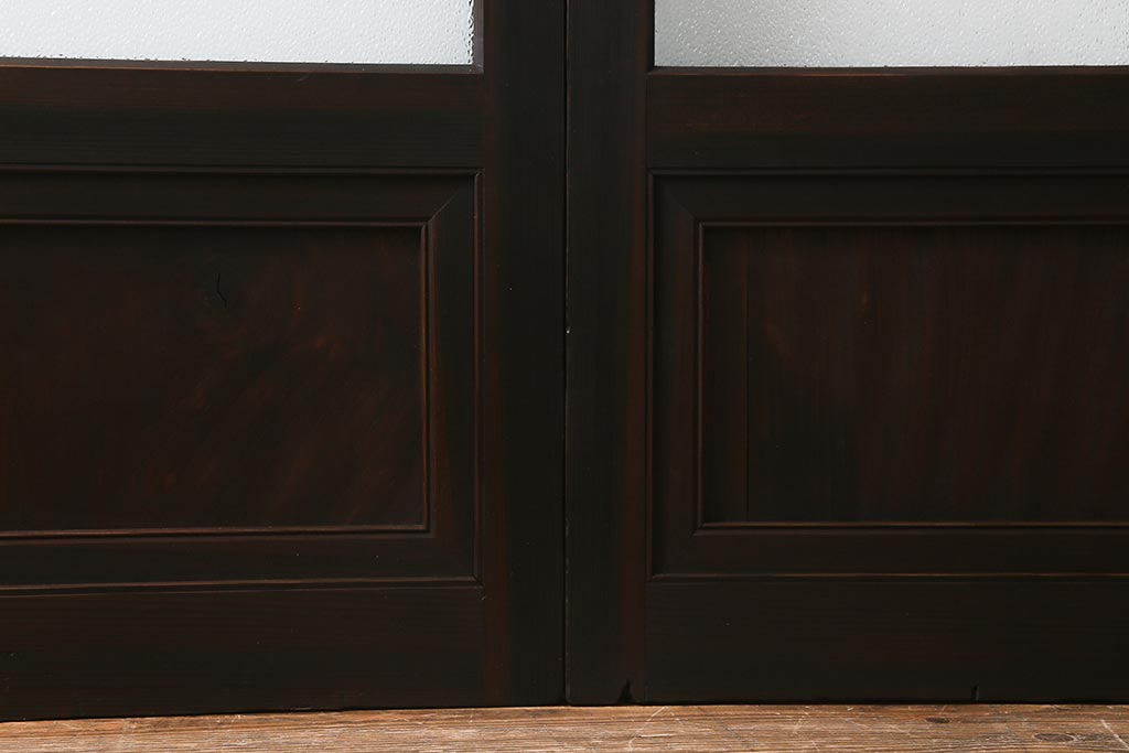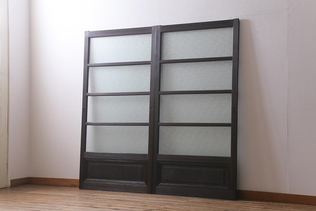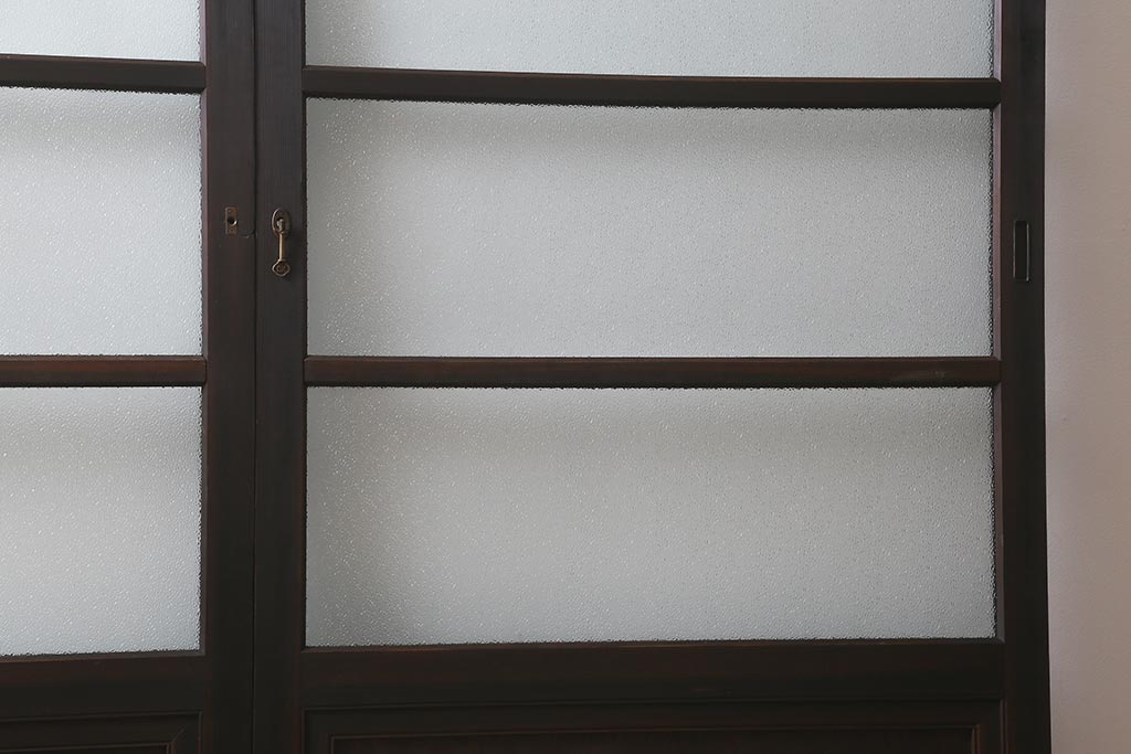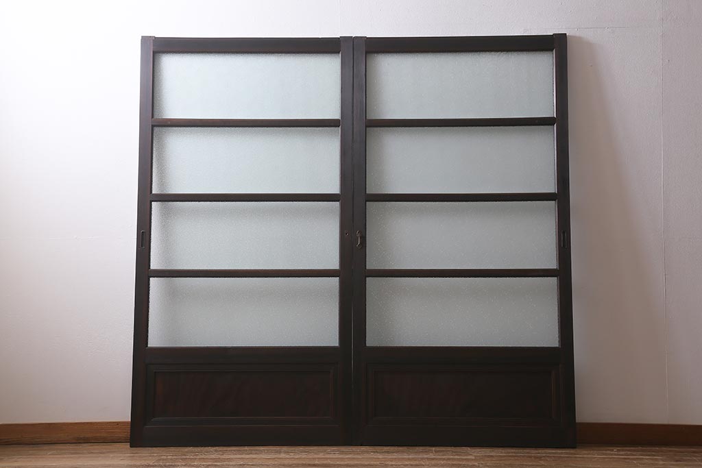 ドア・建具> ガラス戸 > アンティーク建具 昭和初期 腰板ケヤキ材 ダイヤガラス入り 上手物!落ち着いた色合いのレトロなガラス戸2枚セット(引き戸)(R-041450)