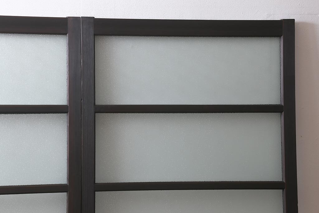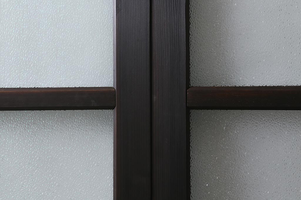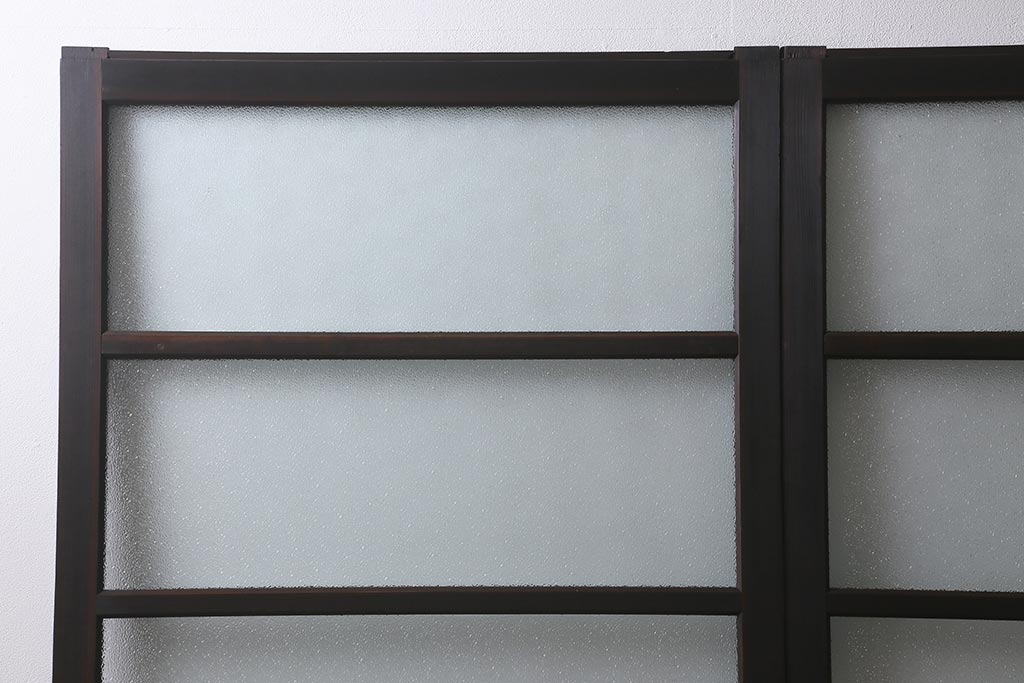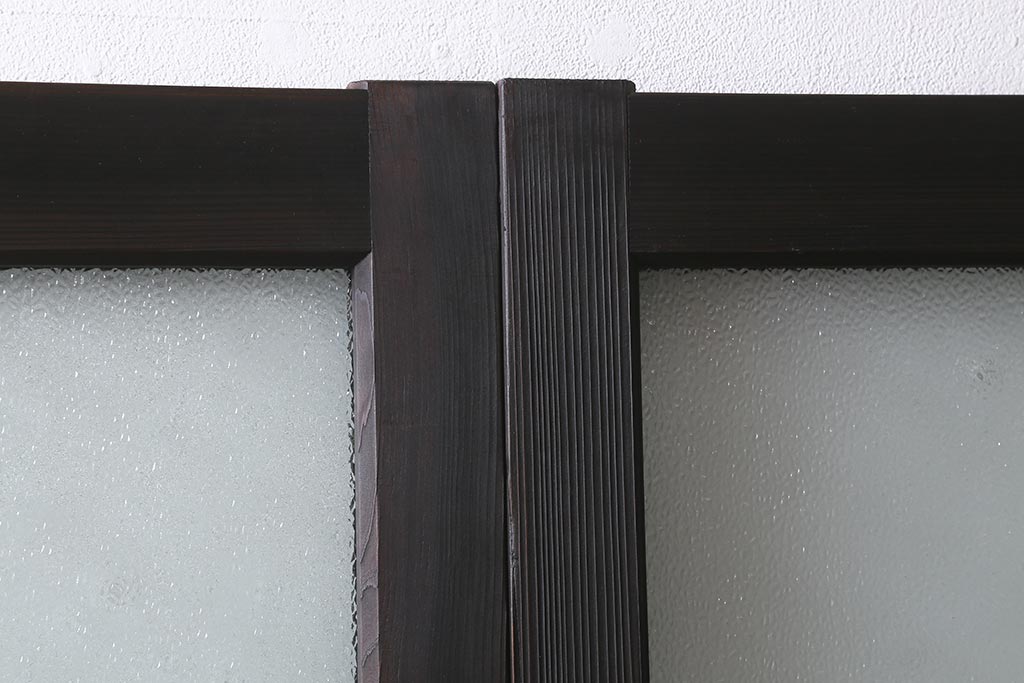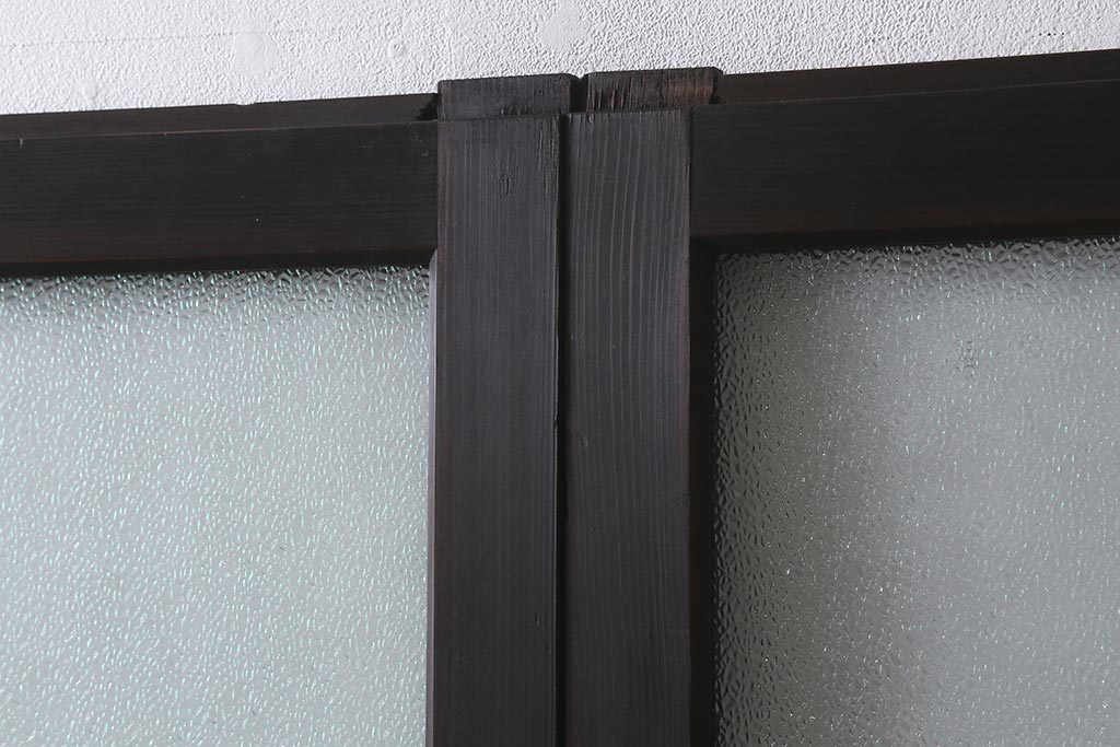 ドア・建具> ガラス戸 > アンティーク建具 昭和初期 腰板ケヤキ材 ダイヤガラス入り 上手物!落ち着いた色合いのレトロなガラス戸2枚セット(引き戸)(R-041450)