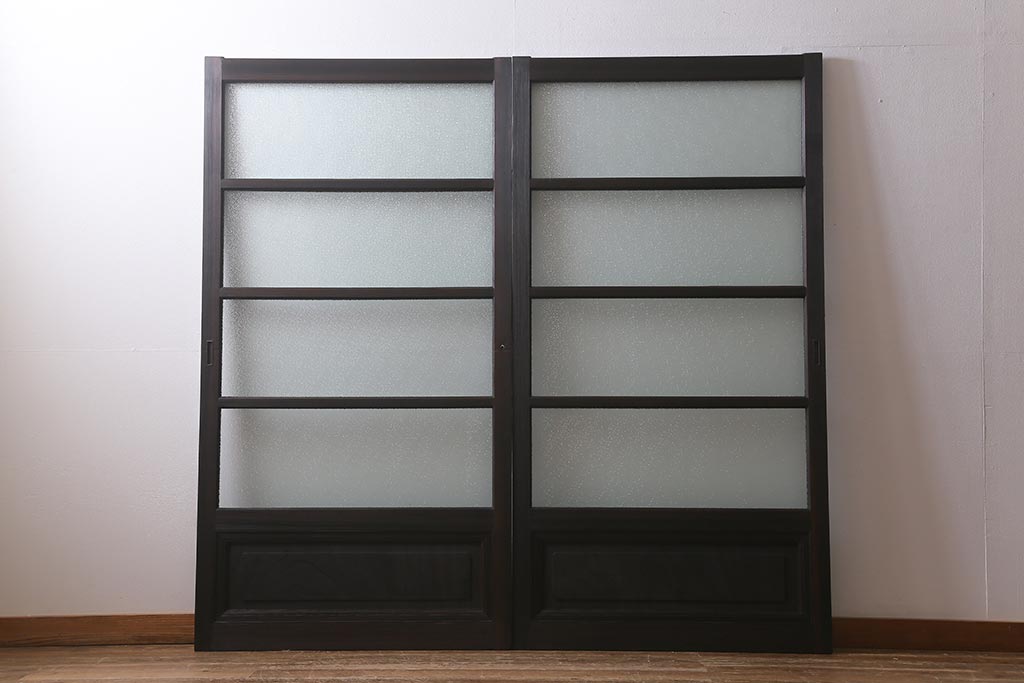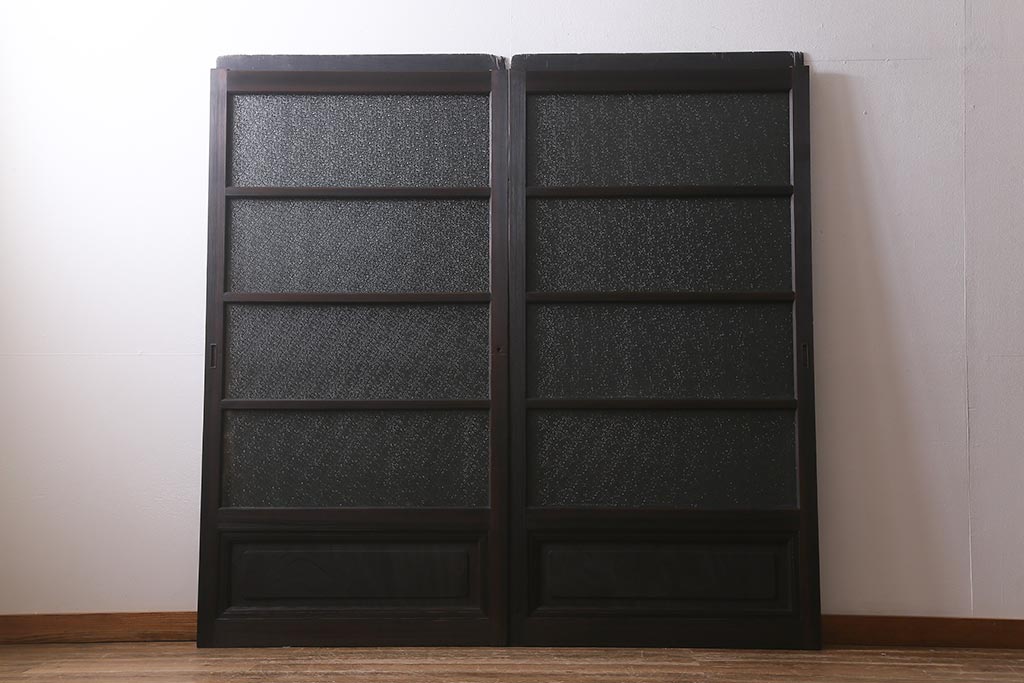 アンティーク建具 昭和初期 腰板ケヤキ材 ダイヤガラス入り 上手物!落ち着いた色合いのレトロなガラス戸2枚セット(引き戸)(R-041450)