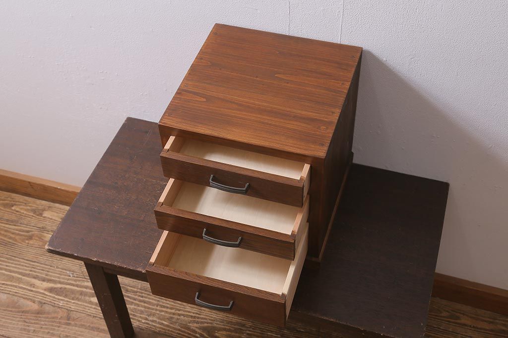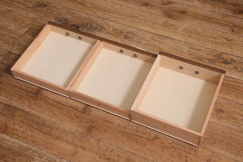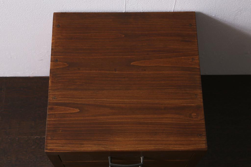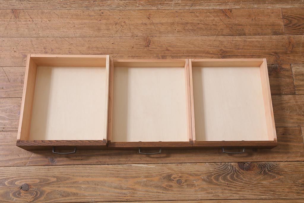 ラフジュ工房オリジナル 古金具リメイク 前板栗材 ヒノキ材 昭和レトロな小引き出し(小物収納)(R-041358)