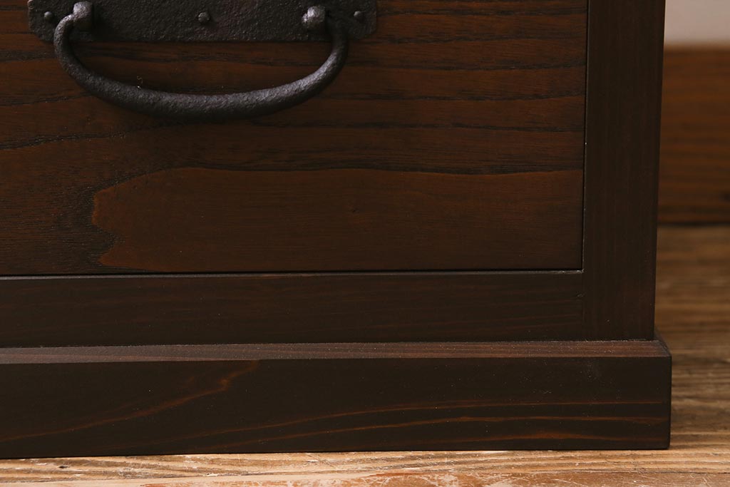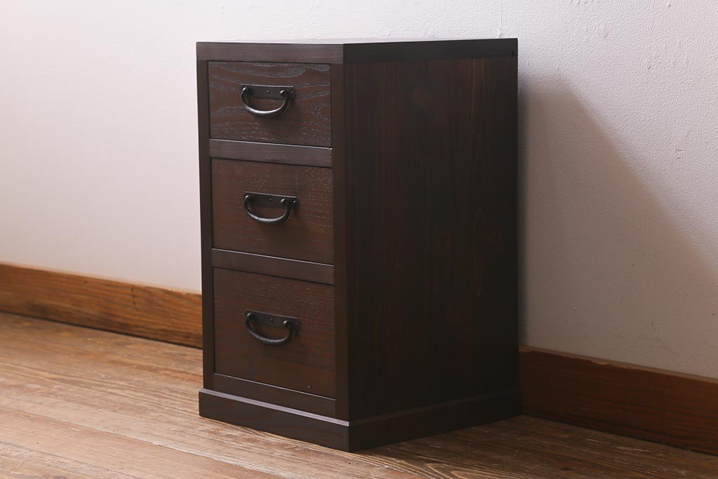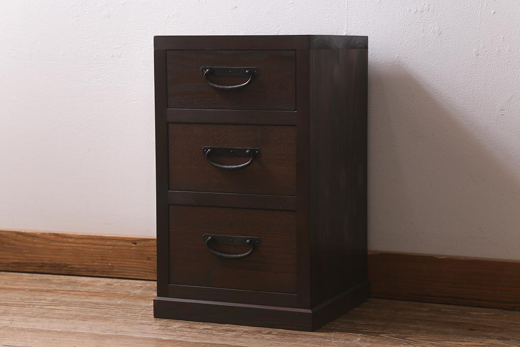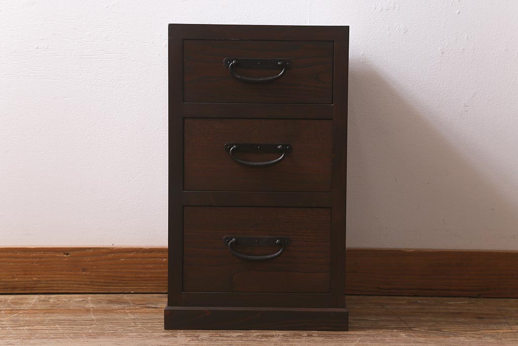 ラフジュ工房オリジナル 古金具リメイク 前板栗材 ヒノキ材 落ち着いた和の雰囲気漂う小引き出し(小物収納、サイドチェスト)(R-041445)です。