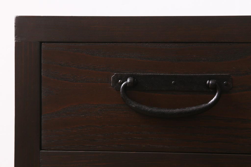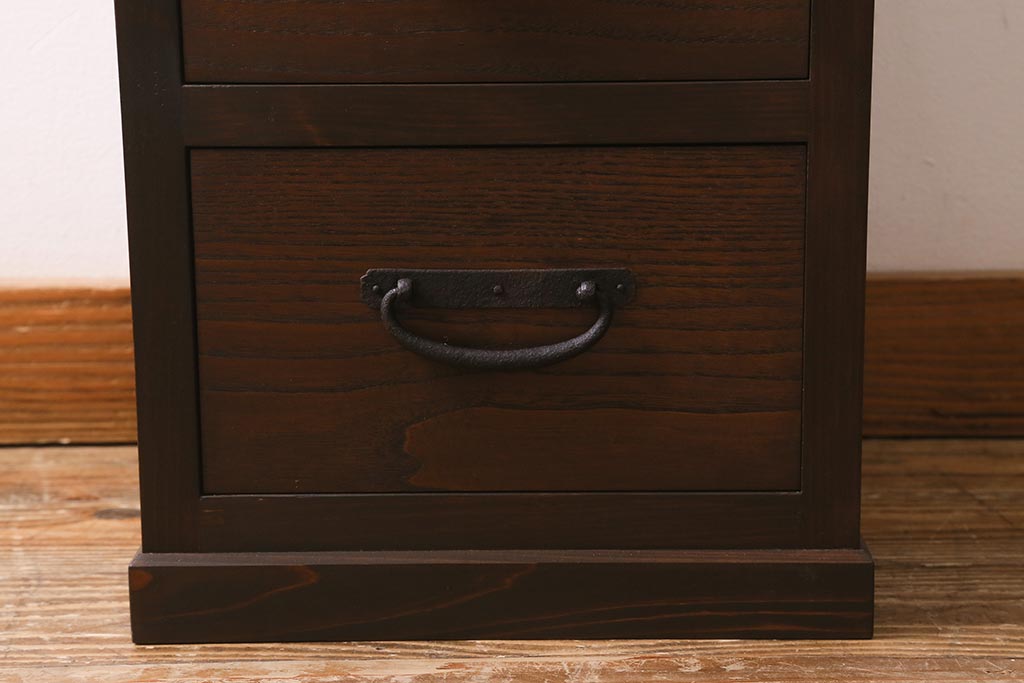 ラフジュ工房オリジナル 古金具リメイク 前板栗材 ヒノキ材 落ち着いた和の雰囲気漂う小引き出し(小物収納、サイドチェスト)(R-041445)