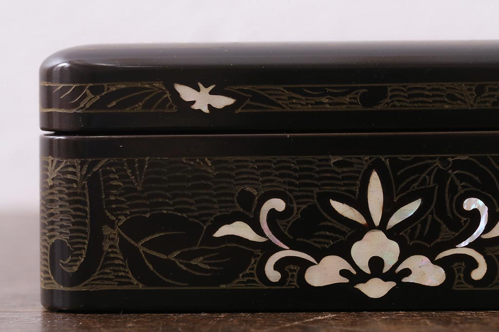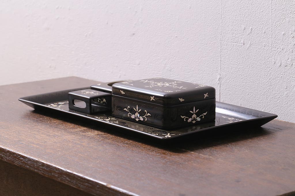 ラフジュ工房> 骨董・美術品 > アンティーク雑貨 骨董 古美術 螺鈿細工 たばこ盆セット(煙草盆、灰皿、ケース、トレー)(R-041335)