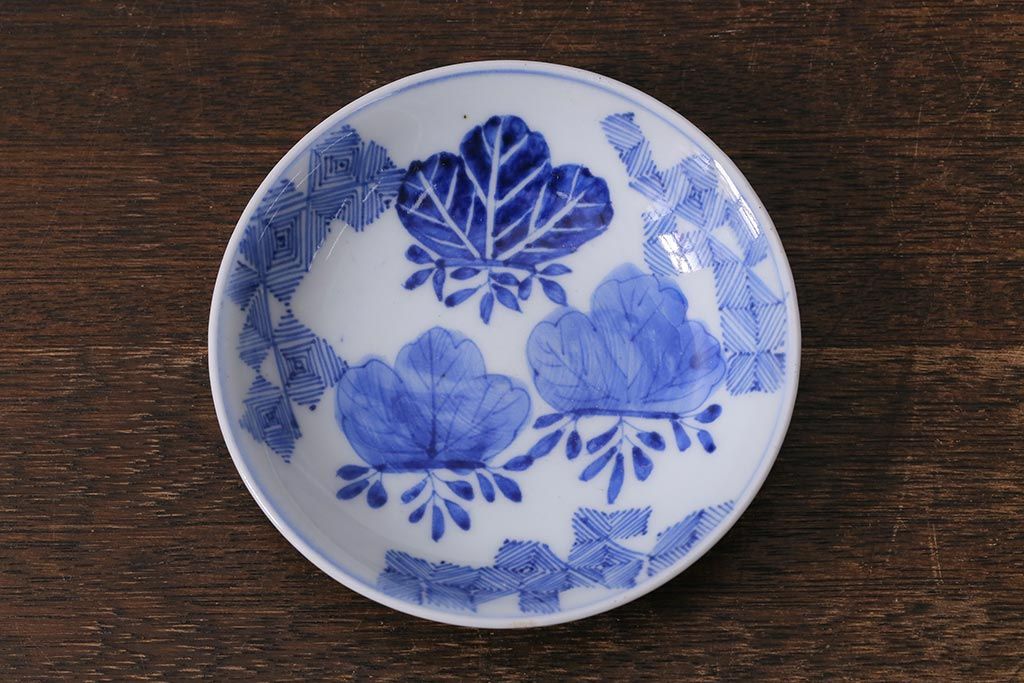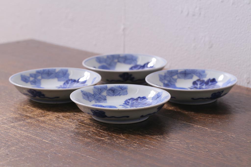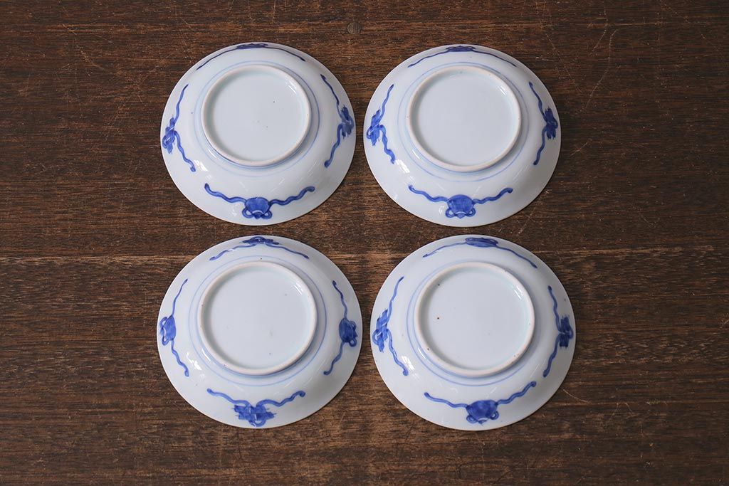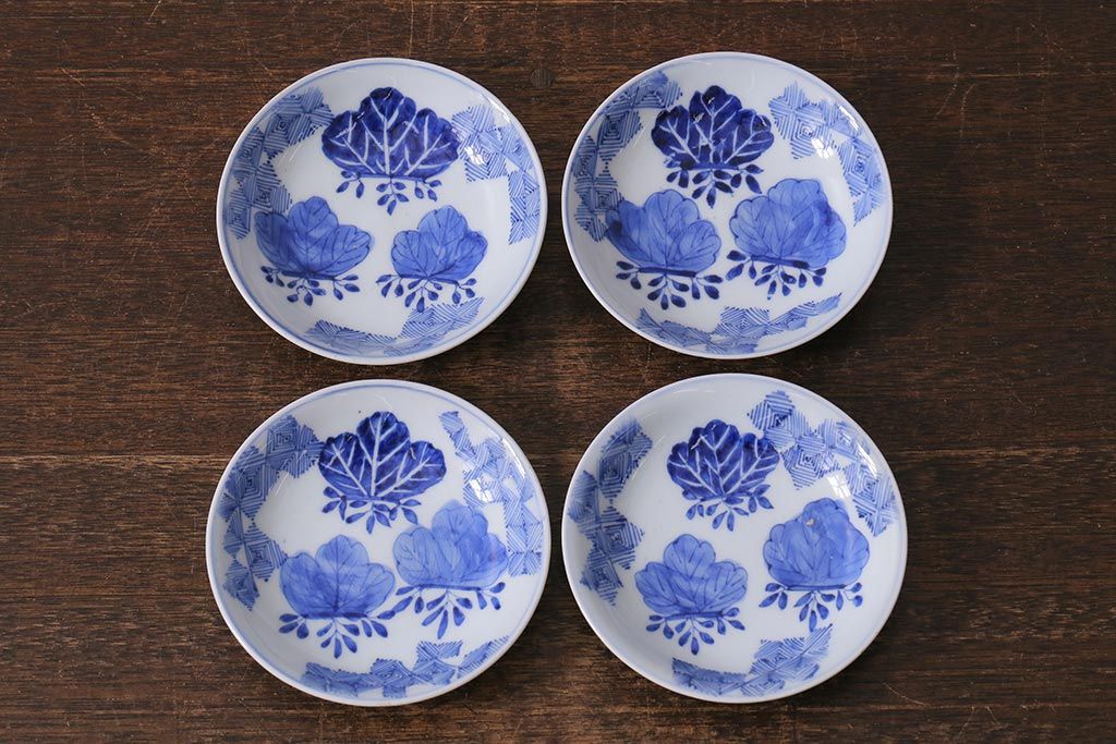 アンティーク雑貨 骨董 幕末明治 伊万里焼 五三桐文 染付小皿4枚セット(和食器)(R-041342)