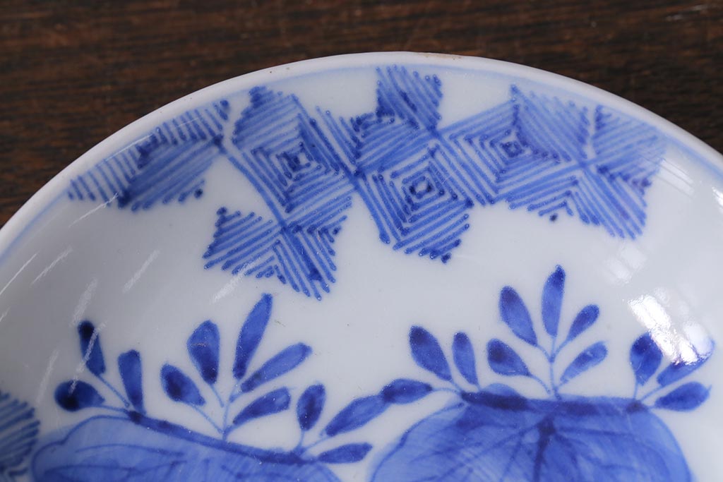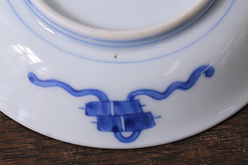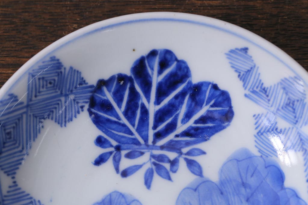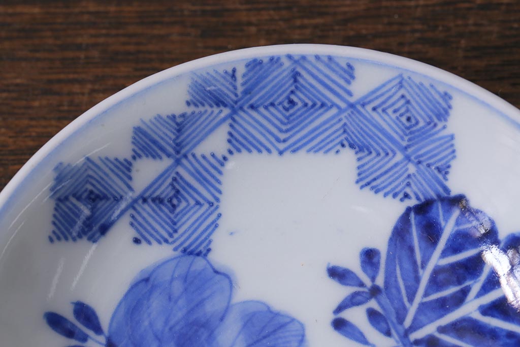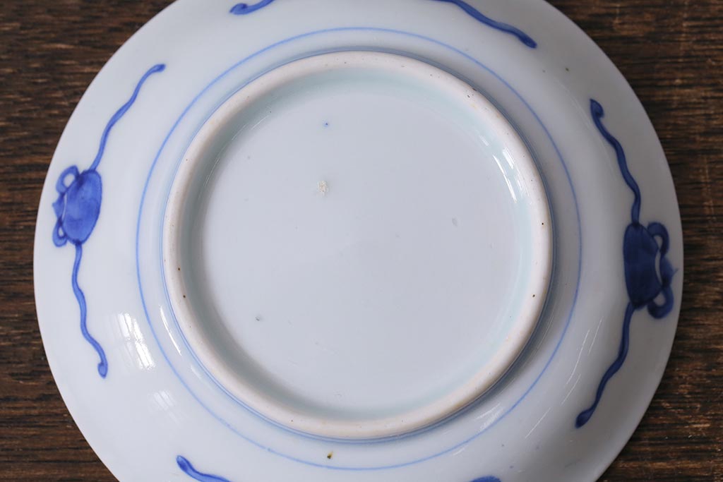 アンティーク雑貨 骨董 幕末明治 伊万里焼 五三桐文 染付小皿4枚セット(和食器)(R-041342)